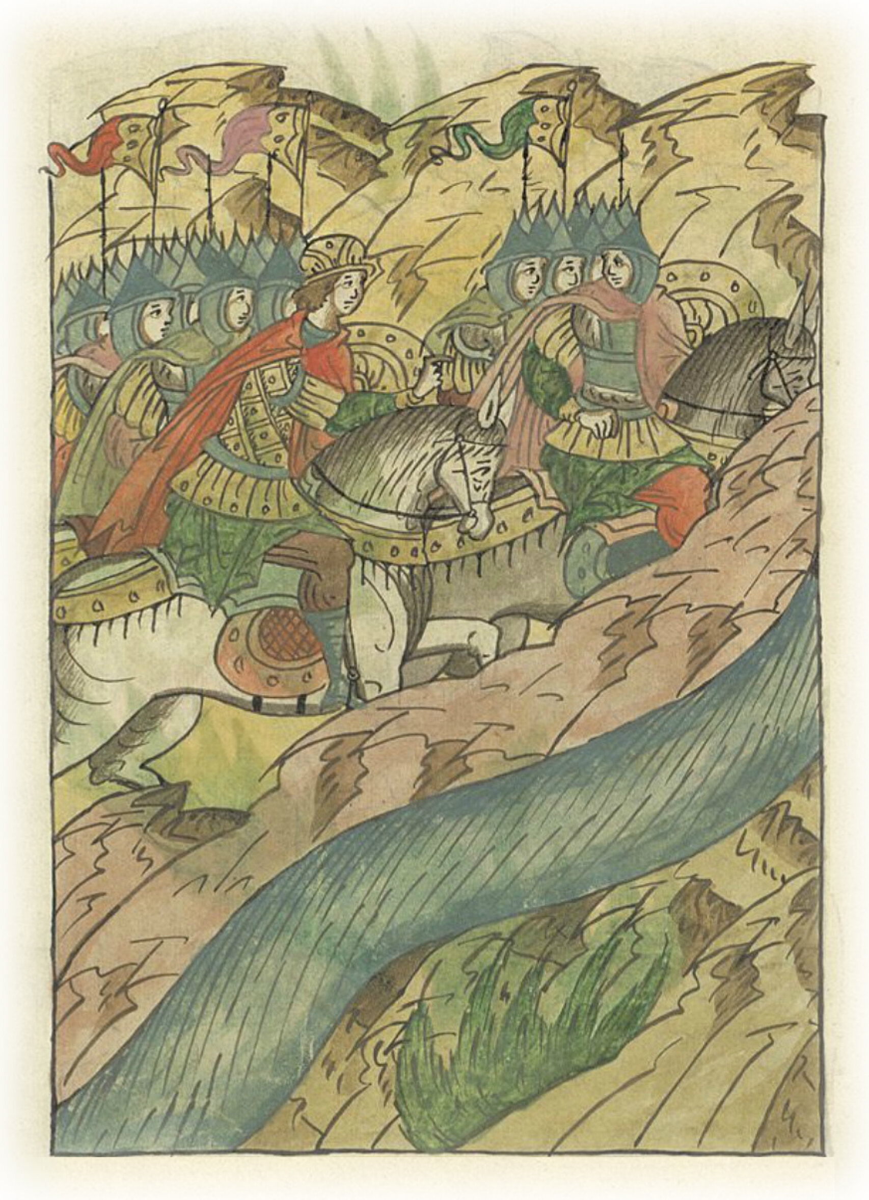 Воеводы царя Ивана Васильевича, разделившись, идут в погоню за царем Емгурчеем.