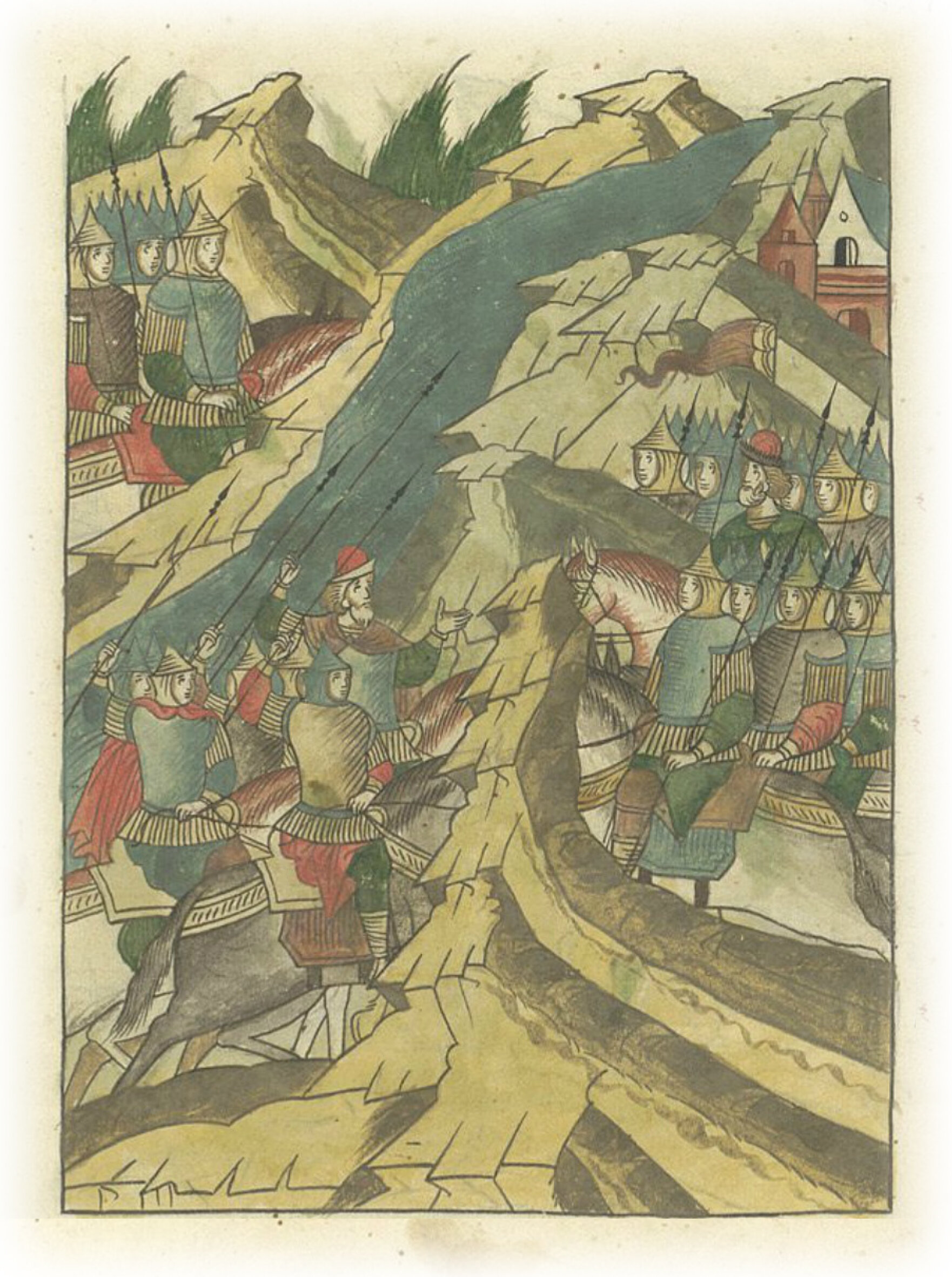 Языки говорят воеводам царя Ивана Васильевича, что магистр окопался большим рвом вокруг города Рындола, бьет из пушек и пищалей и приступает к Рындолу.