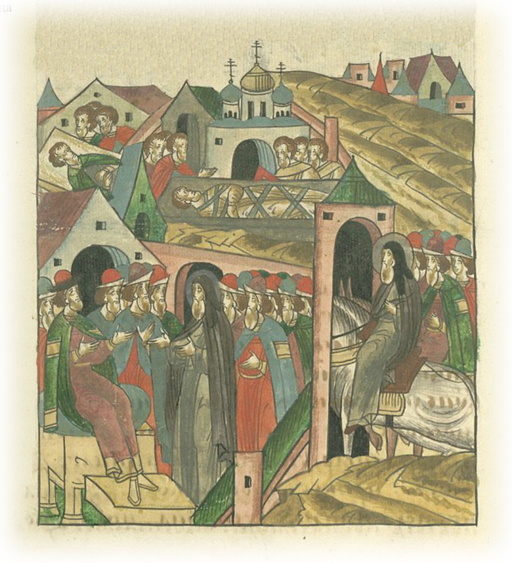 И возвратился преподобный игумен Сергий с честью и со славою многою на Москву к великому князю Дмитрию Ивановичу, и достойно похвалим был, и прославлен, и почтен всеми. Той же зимой преставился раб Божий Семен Яма и положен на Москве, в монастыре святого Вознесения.