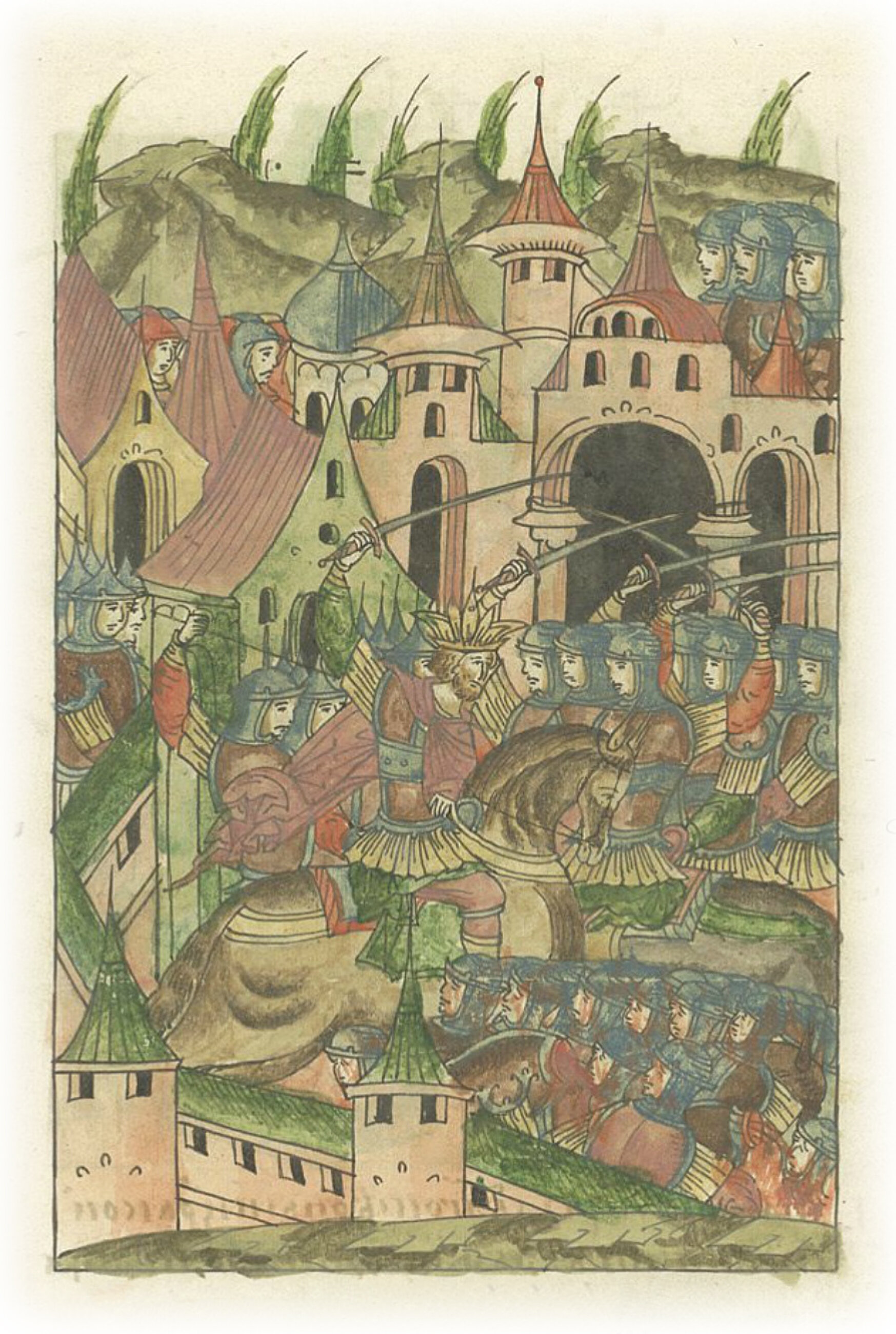 Языки говорят воеводам царя Ивана Васильевича, что магистр окопался большим рвом вокруг города Рындола, бьет из пушек и пищалей и приступает к Рындолу.