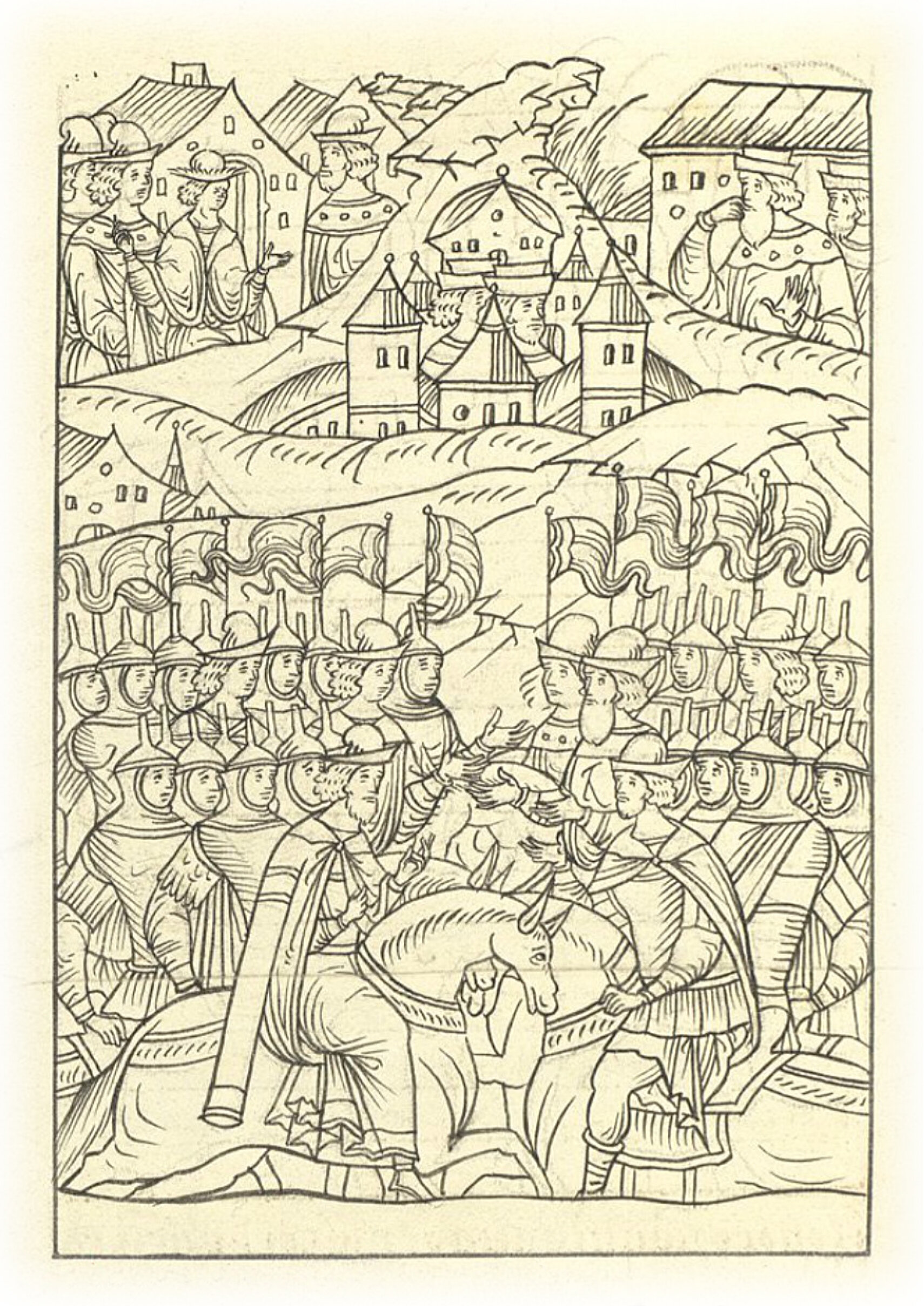 Языки говорят воеводам царя Ивана Васильевича, что магистр окопался большим рвом вокруг города Рындола, бьет из пушек и пищалей и приступает к Рындолу.