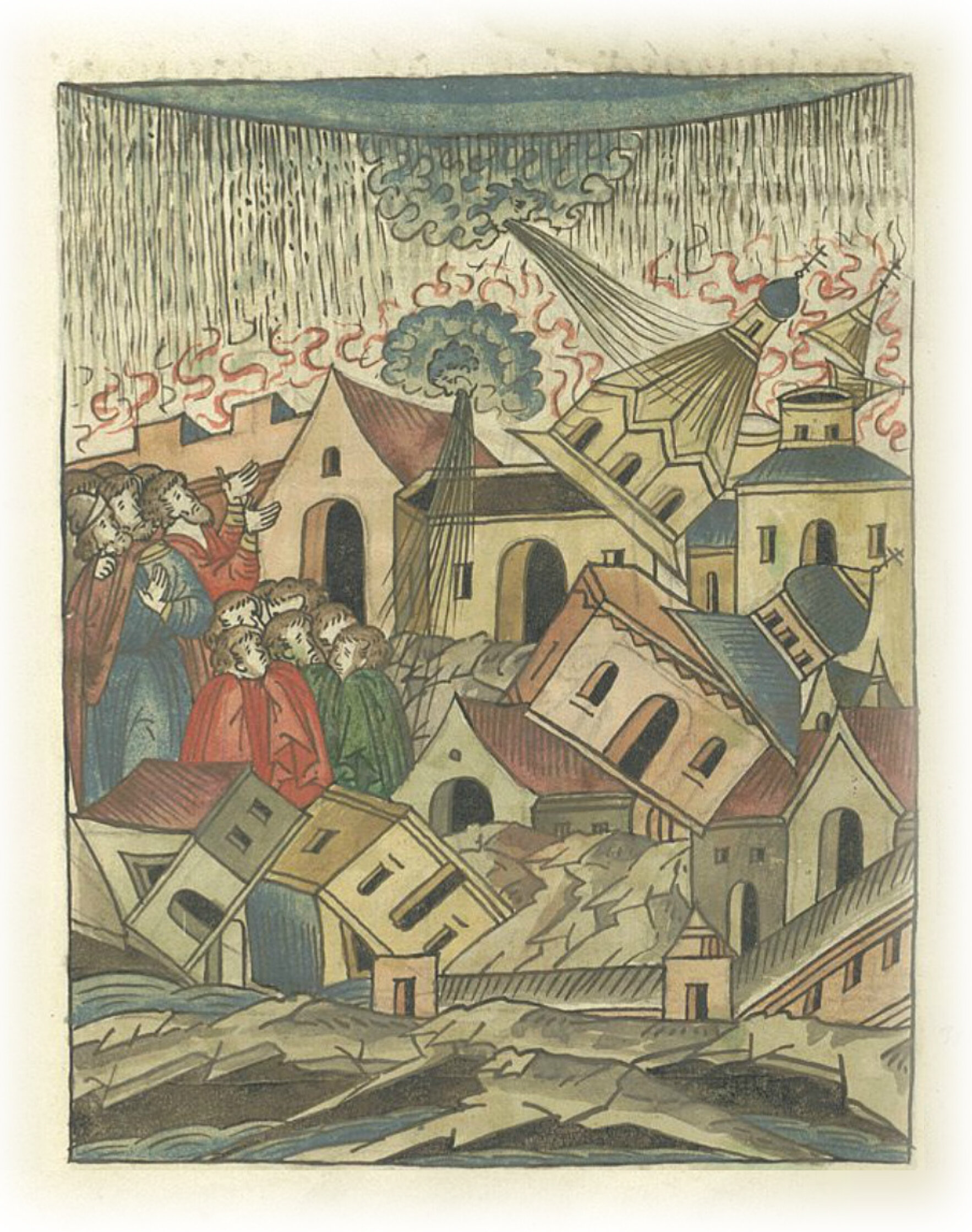 В 6809 (1301) году. Были ветры великие и бури многие и грозные, и вихри сильные, и громы страшные, и молнии, и дожди великие, так что (пришлось) всем людям вострепетать и ужаснуться; и настолько были тучи сильные, что за один только час рвы и овраги словно бездны учинились; ветры же с вихрем многие церкви и дома жителей из основания вырывали, а у некоторых верхи срывали и до половины храмы великие разрушали, и таких не возможно сосчитать.