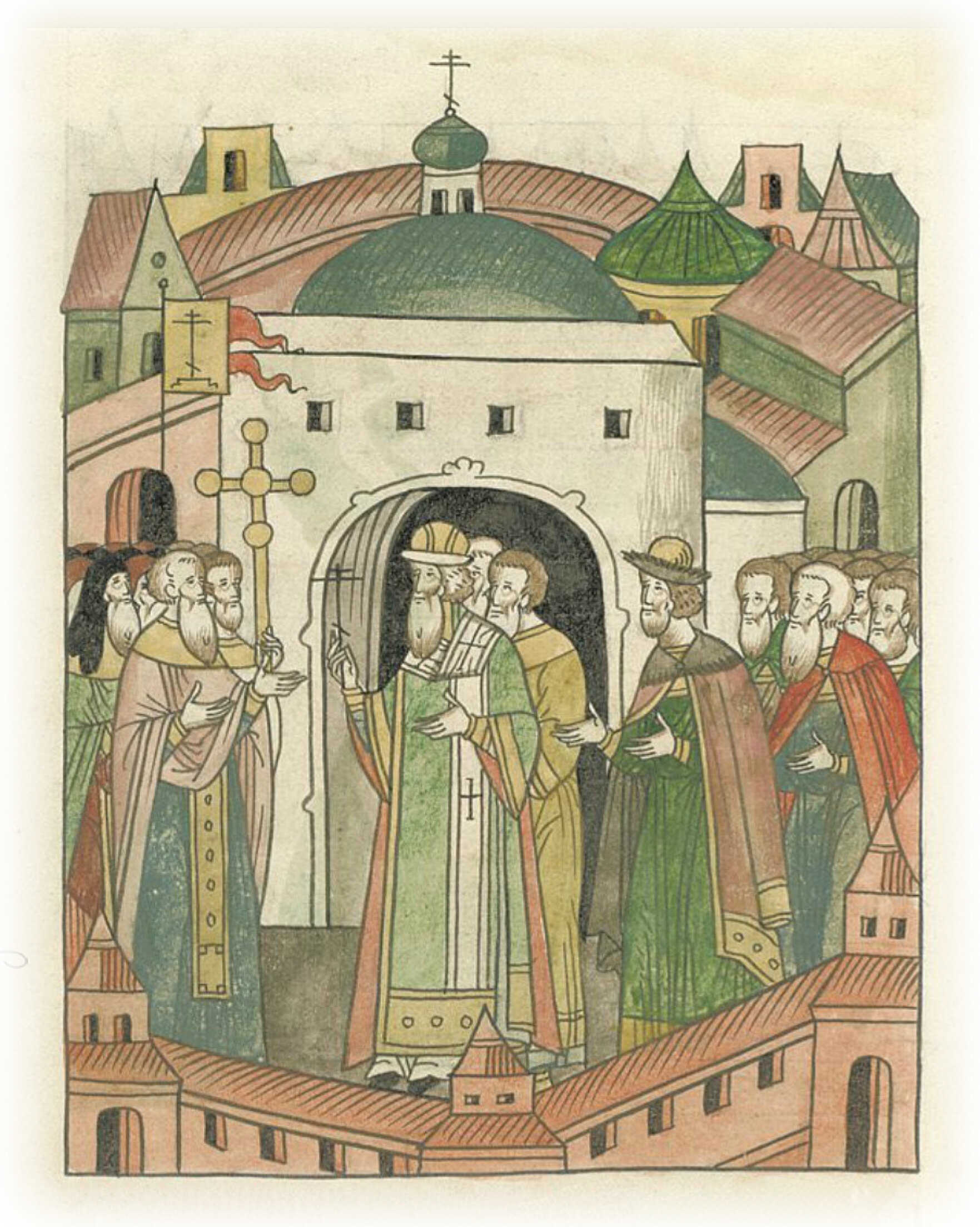 Об освящении церкви великого чудотворца Николы Гостунского. В 7015 (1506) году (месяца) октября в 1 день в четверг была освящена церковь в городе Москве (во имя) святого и великого чудотворца Николая преосвященным Симоном, митрополитом всея Руси, в царство благочестивого и христолюбивого великого князя Василия Ивановича всея Руси, в первый год его государства.