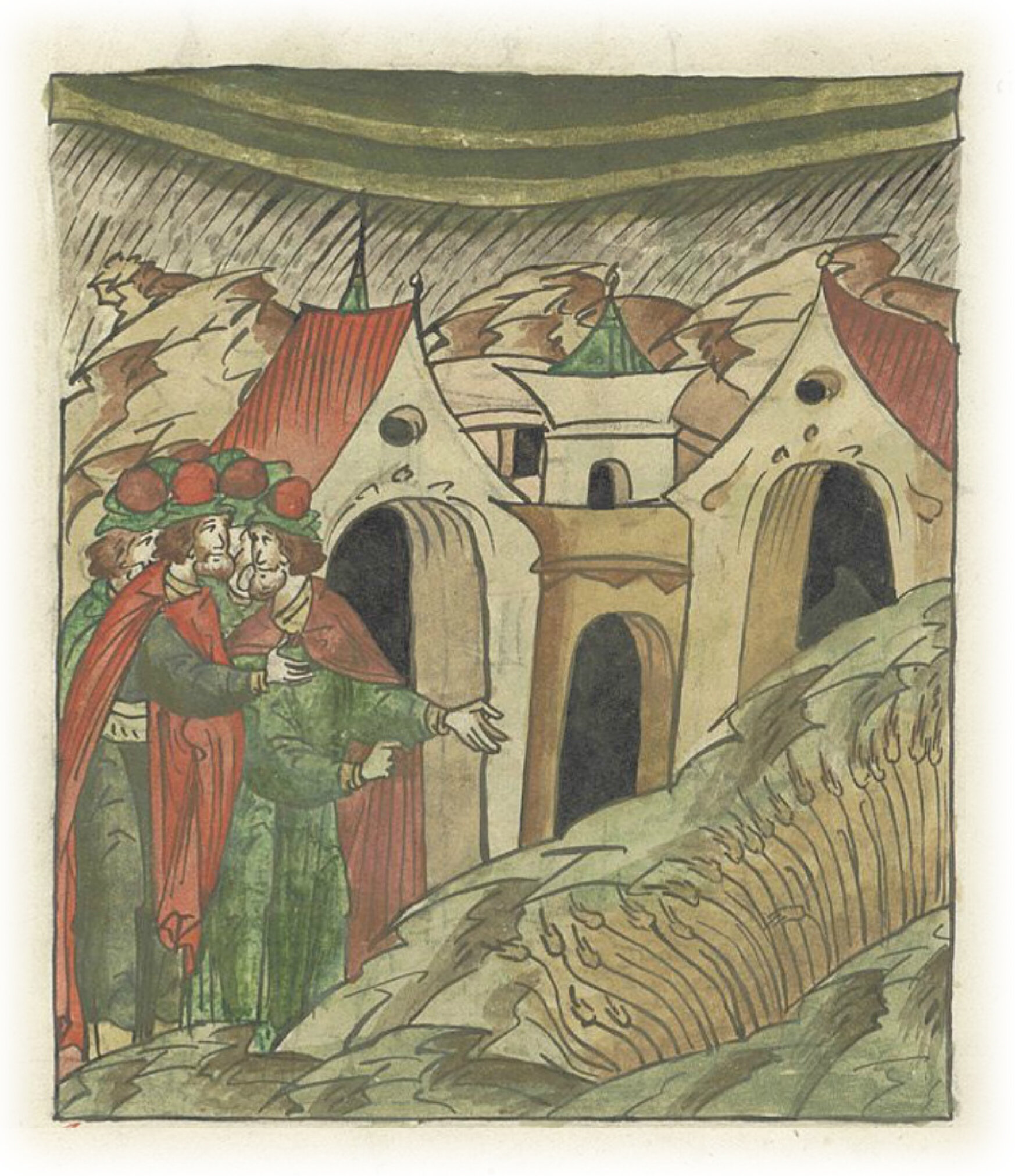 И разгневался Бог, и опустошил землю, и пошел дождь от Благовещения до Ильина дня, день и ночь, и настала стужа, и были морозы великие, и побило все хлеба.