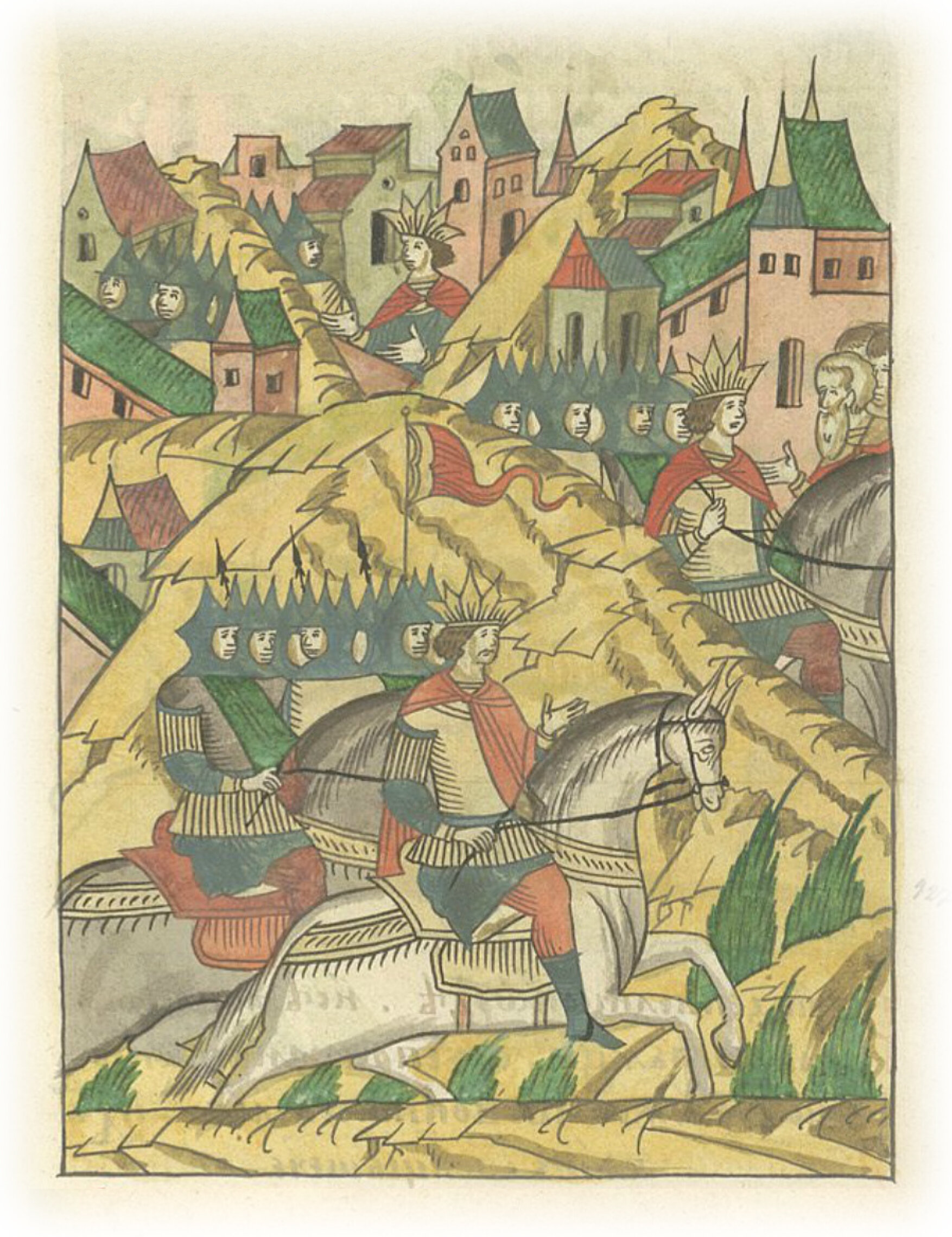 Воеводы царя Ивана Васильевича, разделившись, идут в погоню за царем Емгурчеем.