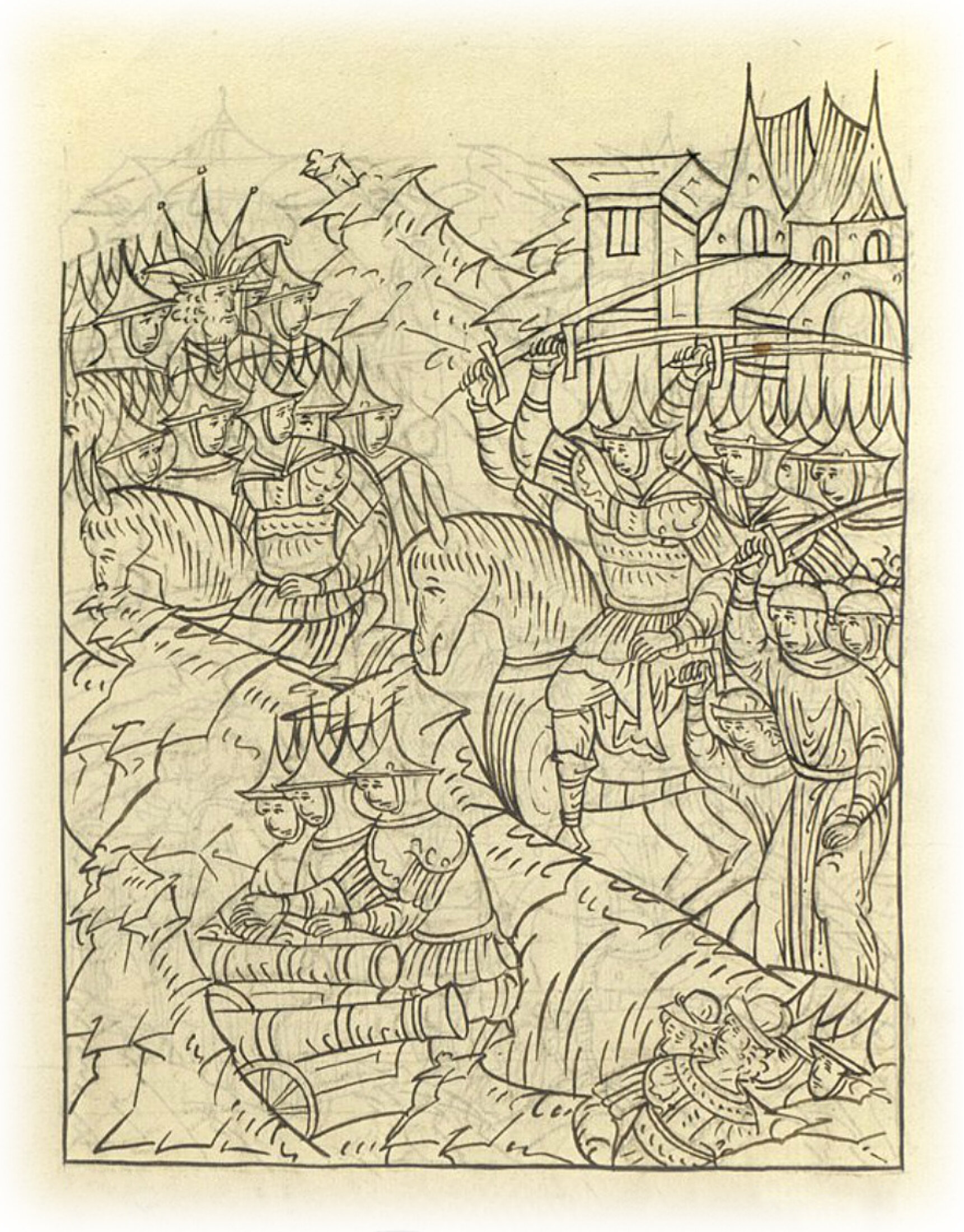 И устремились все на безбожных, и вышли из города не только воеводы, но и все мужи и жены, обретшие мужскую храбрость, и молодые дети, многих татар под городом побили, и убили царского шурина князя Камбирдея, и пушечное снаряжение, ядра и стрелы, и много пороха, привезенное для разорения города, захватили православные.