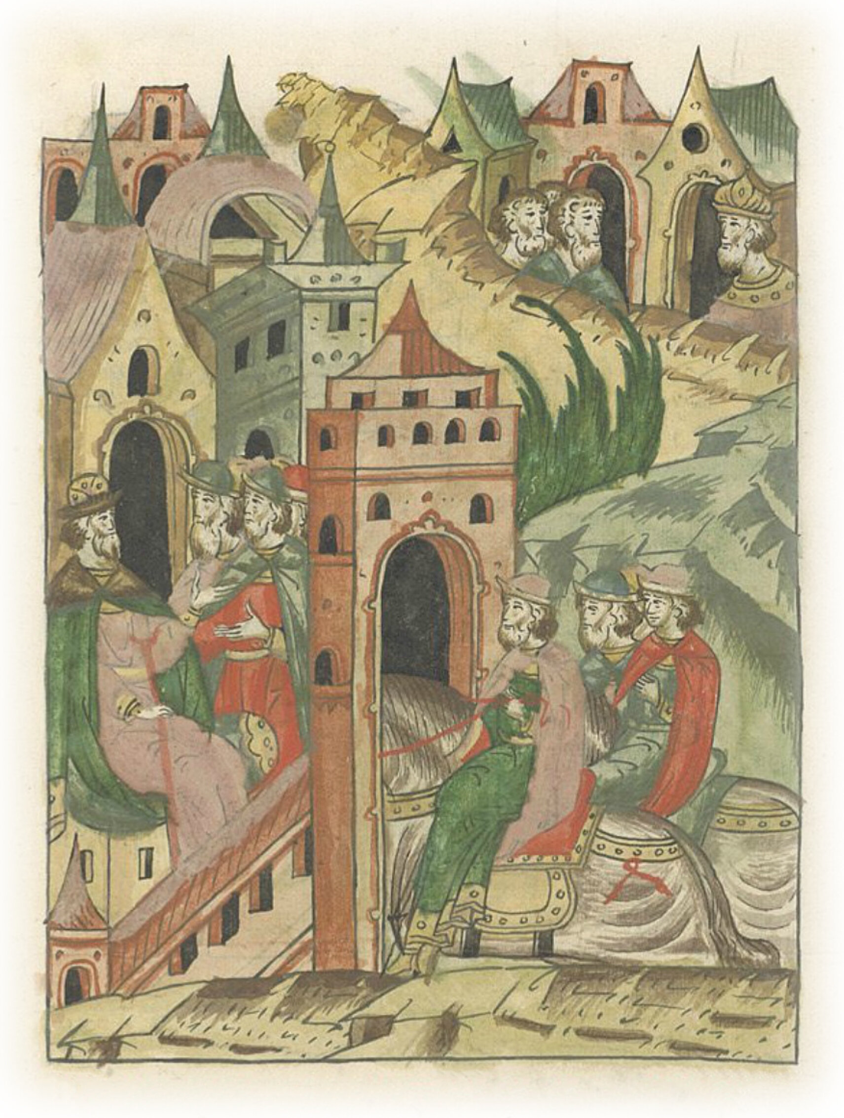Ругодивские посадники Яким и Захар приезжают в Москву. Воеводы царя Ивана Васильевича Алексей Адашев и Иван Михайлов сообщают им, что государь пожалует их, если сдадут его воеводам помимо Ругодива Вышгород.
