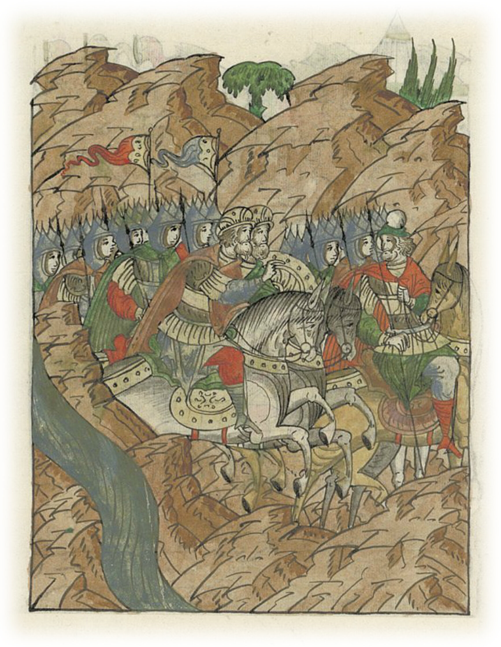Воеводы царя Ивана Васильевича, разделившись, идут в погоню за царем Емгурчеем.