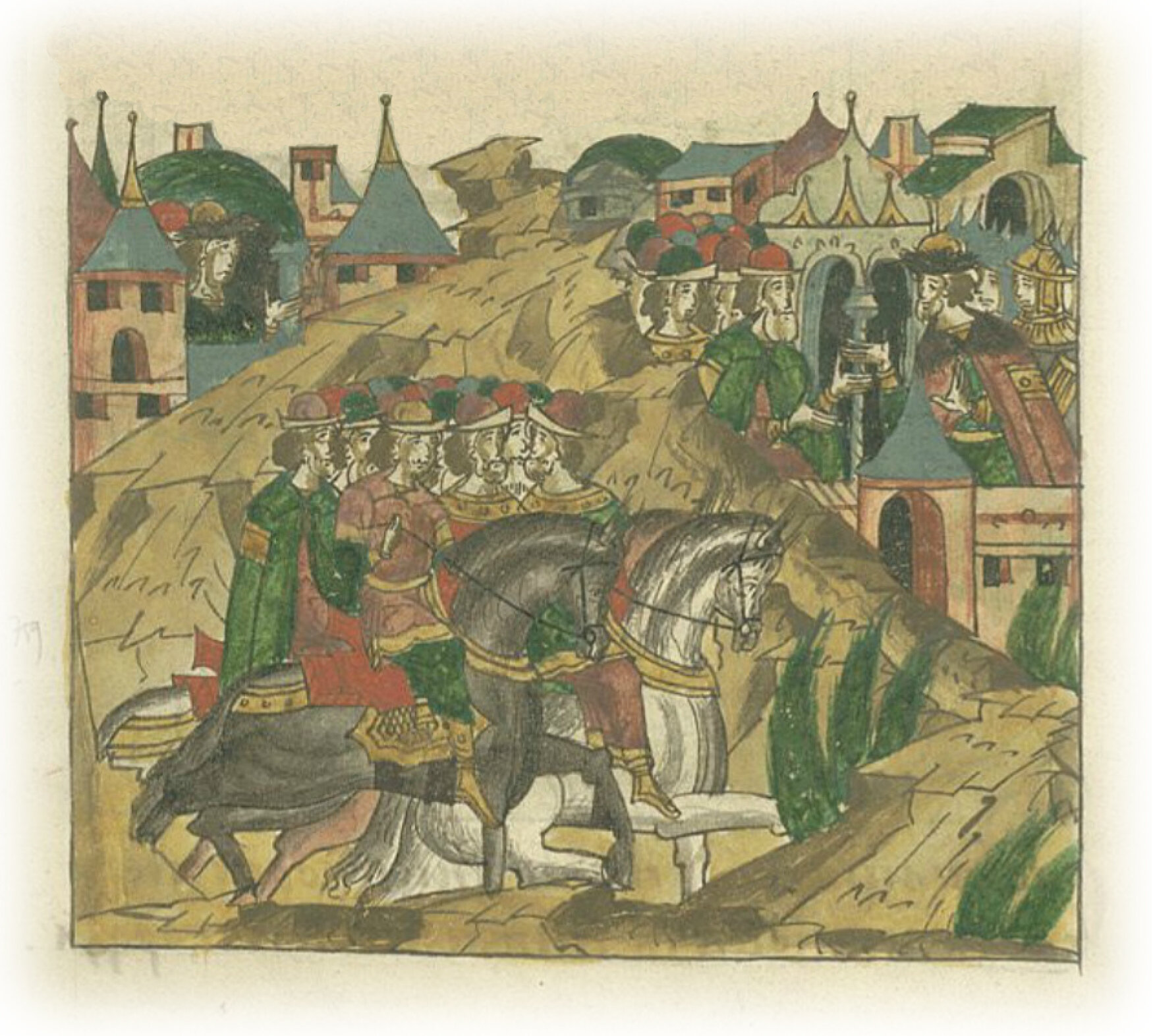 Языки говорят воеводам царя Ивана Васильевича, что магистр окопался большим рвом вокруг города Рындола, бьет из пушек и пищалей и приступает к Рындолу.