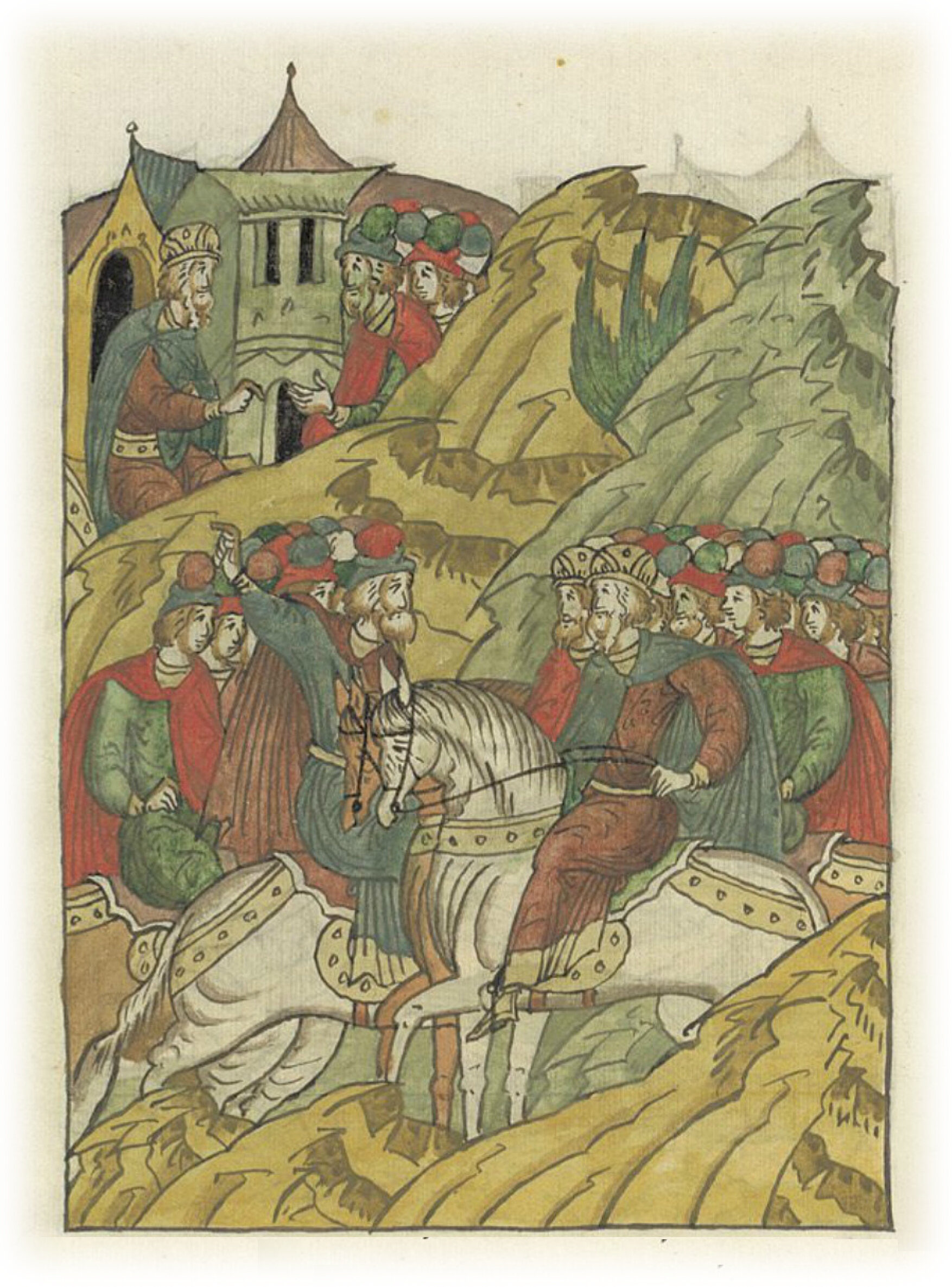 И встретил их воевода Еремей, посланный от великого князя Константина Всеволодовича из Ростова, говоря им так: «Князь великий Константин Всеволодович вам кланяется и говорит: «Рад слышать о вашем приходе. Посылаю вам рать в помощь, пятьсот мужей, да пришлите ко мне со всеми речами князя Всеволода, (сына) Мстислава Романовича, шурина моего».