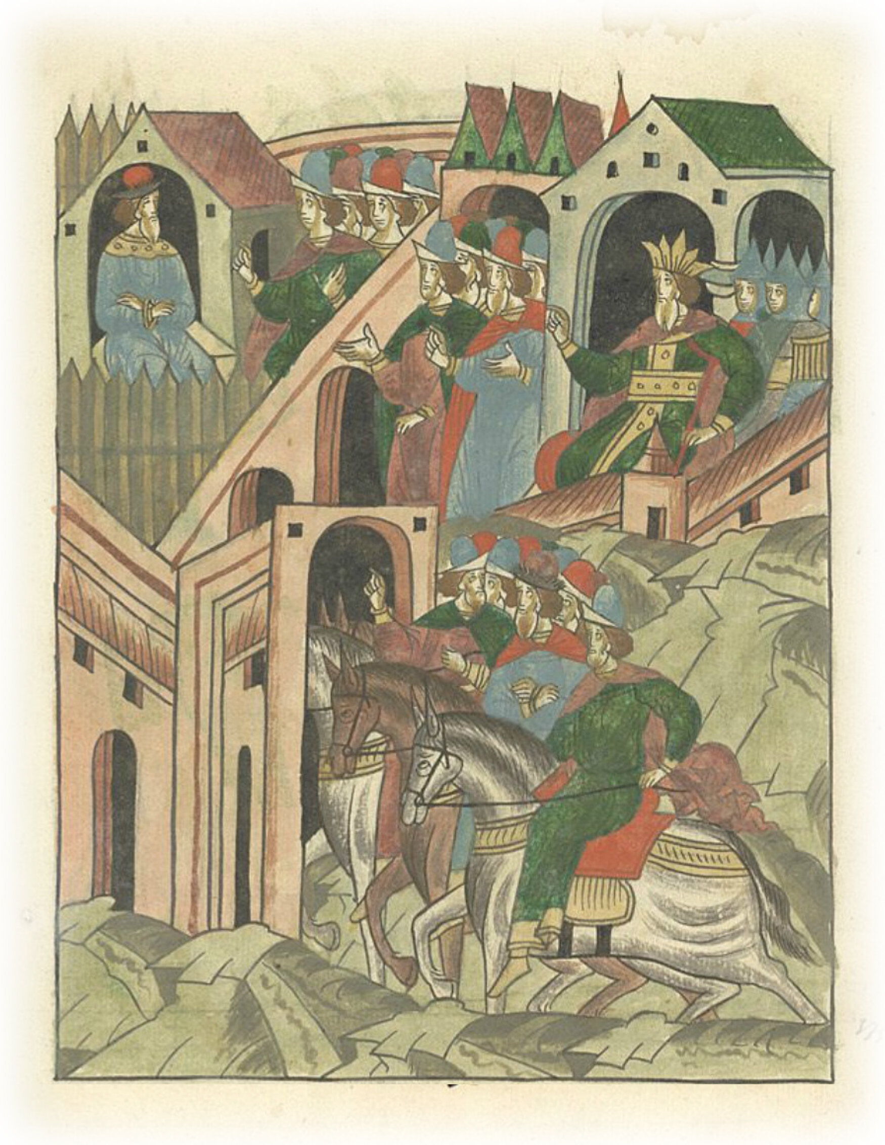 Князь Василий Дмитриевич Суздальский Кирдяпа сбегает из Орды от царя Тохтамыша, но его встречает татарский посол и приводит обратно.