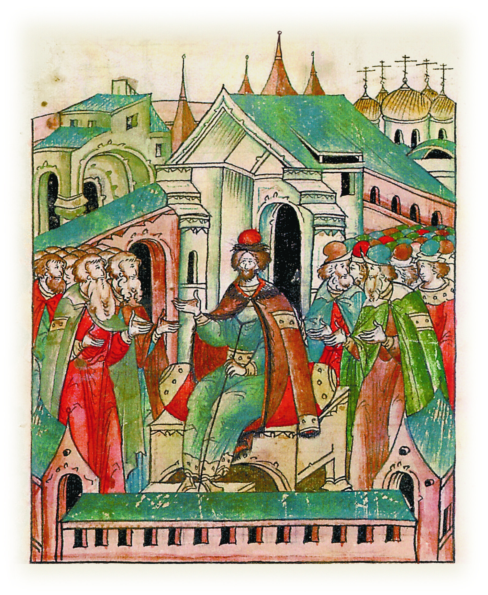 Ругодивские посадники Яким и Захар приезжают в Москву. Воеводы царя Ивана Васильевича Алексей Адашев и Иван Михайлов сообщают им, что государь пожалует их, если сдадут его воеводам помимо Ругодива Вышгород.