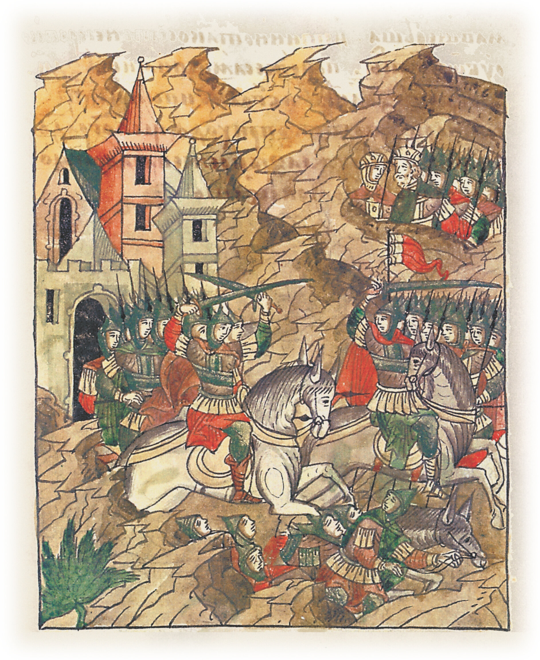 Горожане же каждый день выходили из города и бились. Тогда князь Андрей Боголюбский сказал отцу своему, князю Юрию Долгорукому, так: «Видишь, отец, воинство твое – не единодушное, не крепко бьющееся; как эти, выходящие из города на такое множество нашего воинства, одолевают и многую укоризну и срамоту нам творят?» И, собравшись со всеми князьями и подумав, сказали: «Истинно так; не крепко бьются, потому что сами с ними не ездим».