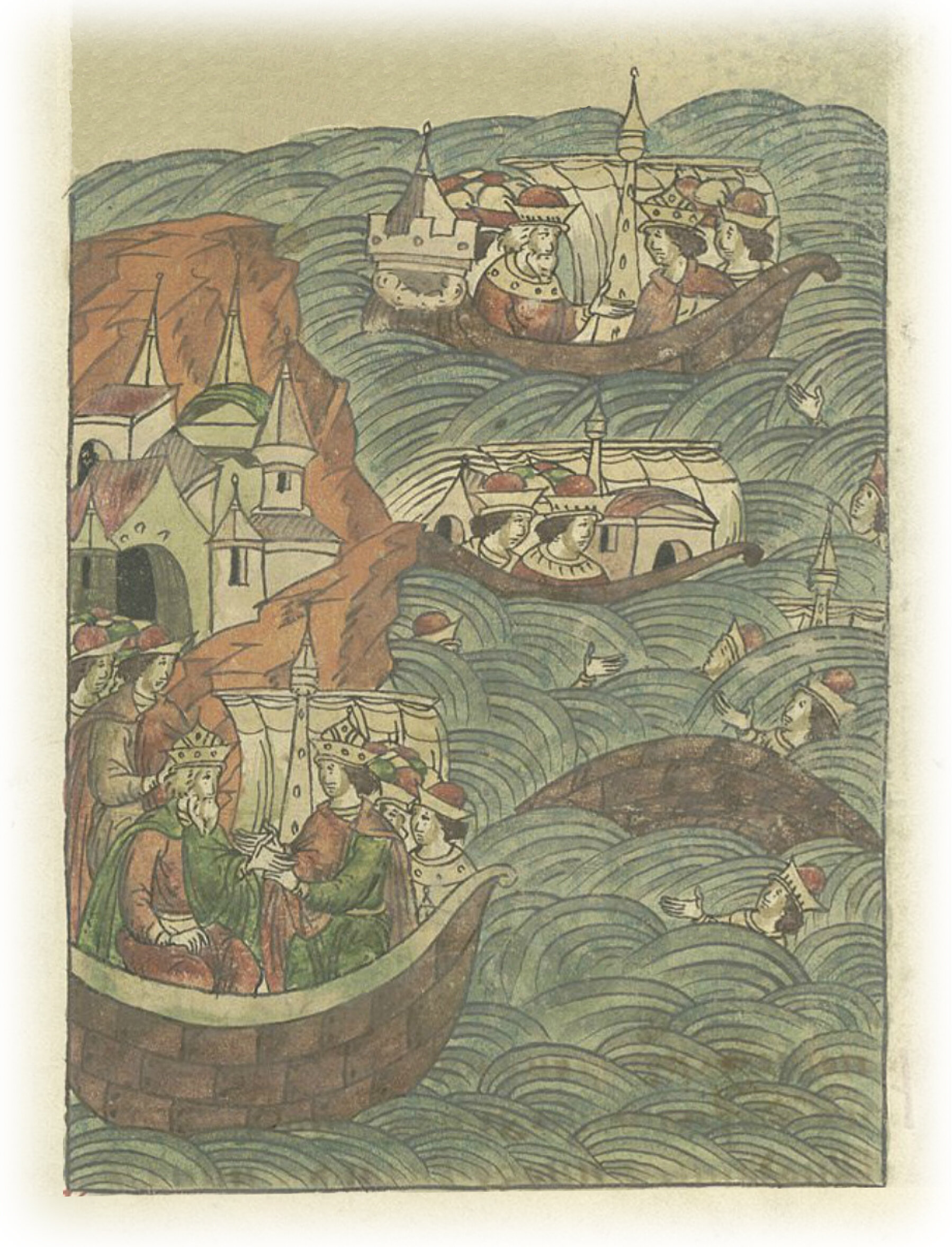 И повез меня сын мой в свою Мурманскую землю. И, когда я поднялся на корабль, опять поднялась сильная буря, так что не видно стало кораблей наших с парусами в волнах. И так все люди мои были потоплены.