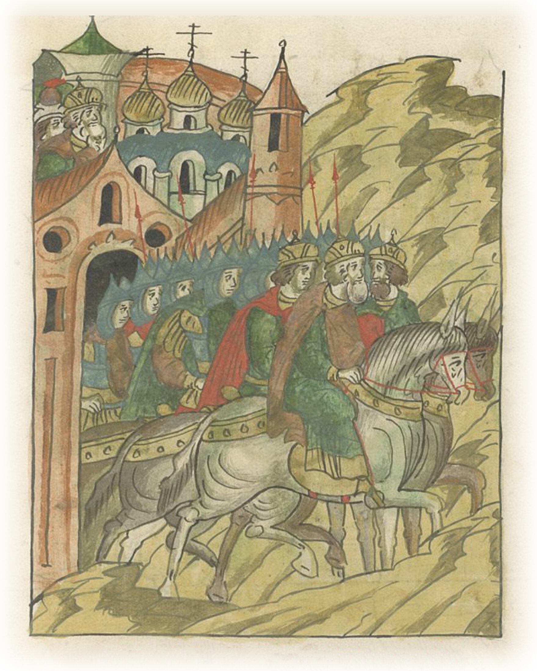 Великий князь Василий Иванович приходит с братьями и ратью к Смоленску, оставив в Москве своего брата Андрея Ивановича.
