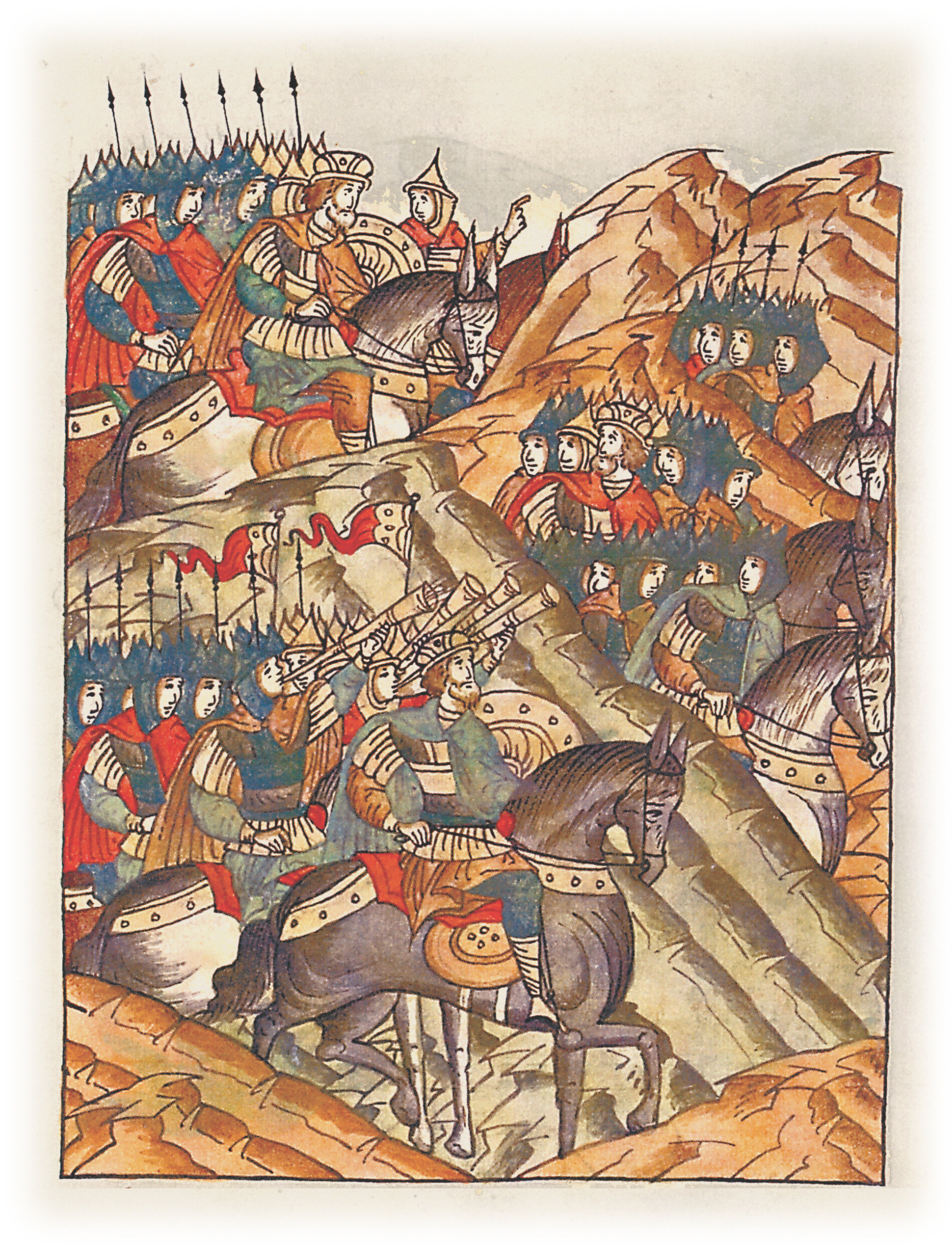Воеводы царя Ивана Васильевича, разделившись, идут в погоню за царем Емгурчеем.