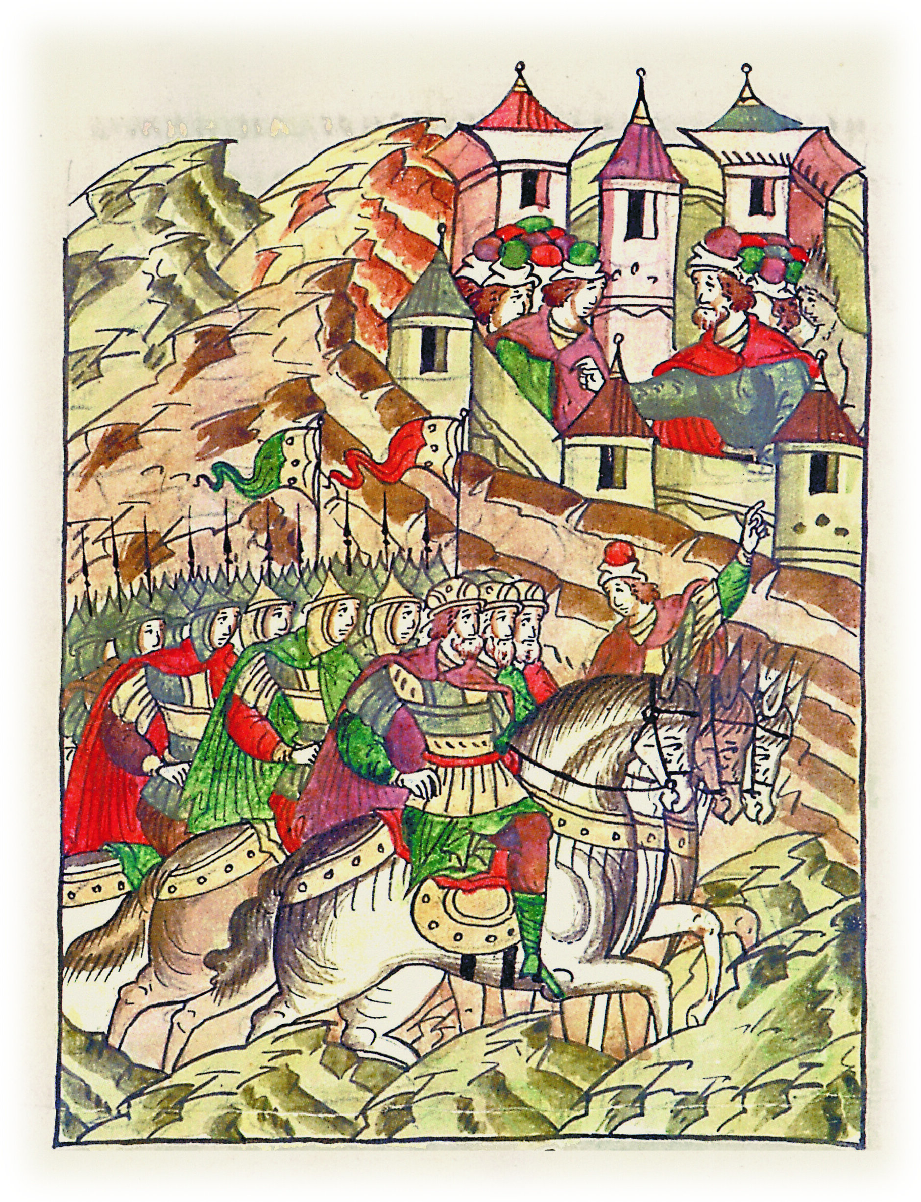 Языки говорят воеводам царя Ивана Васильевича, что магистр окопался большим рвом вокруг города Рындола, бьет из пушек и пищалей и приступает к Рындолу.