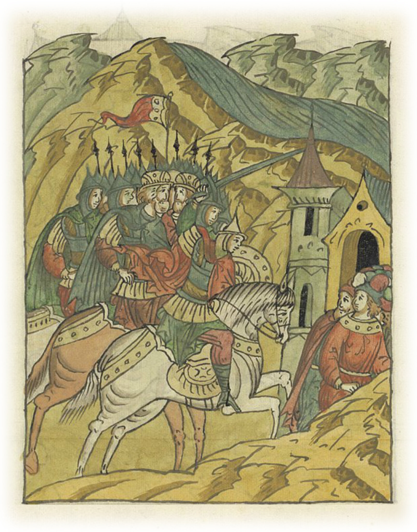 Воеводы царя Ивана Васильевича, разделившись, идут в погоню за царем Емгурчеем.
