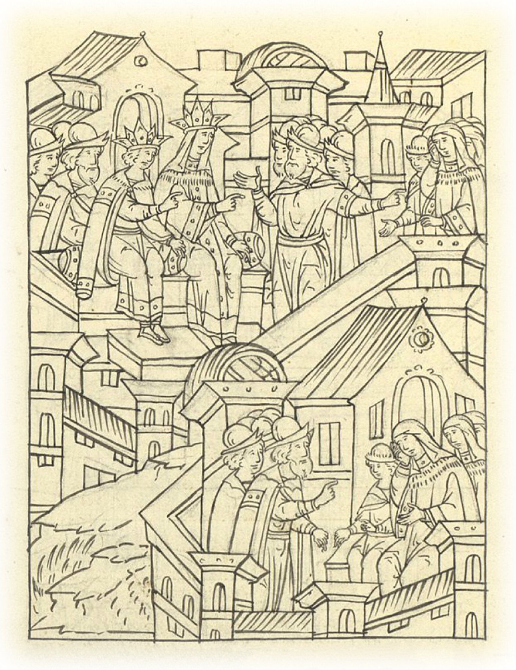Ругодивские посадники Яким и Захар приезжают в Москву. Воеводы царя Ивана Васильевича Алексей Адашев и Иван Михайлов сообщают им, что государь пожалует их, если сдадут его воеводам помимо Ругодива Вышгород.