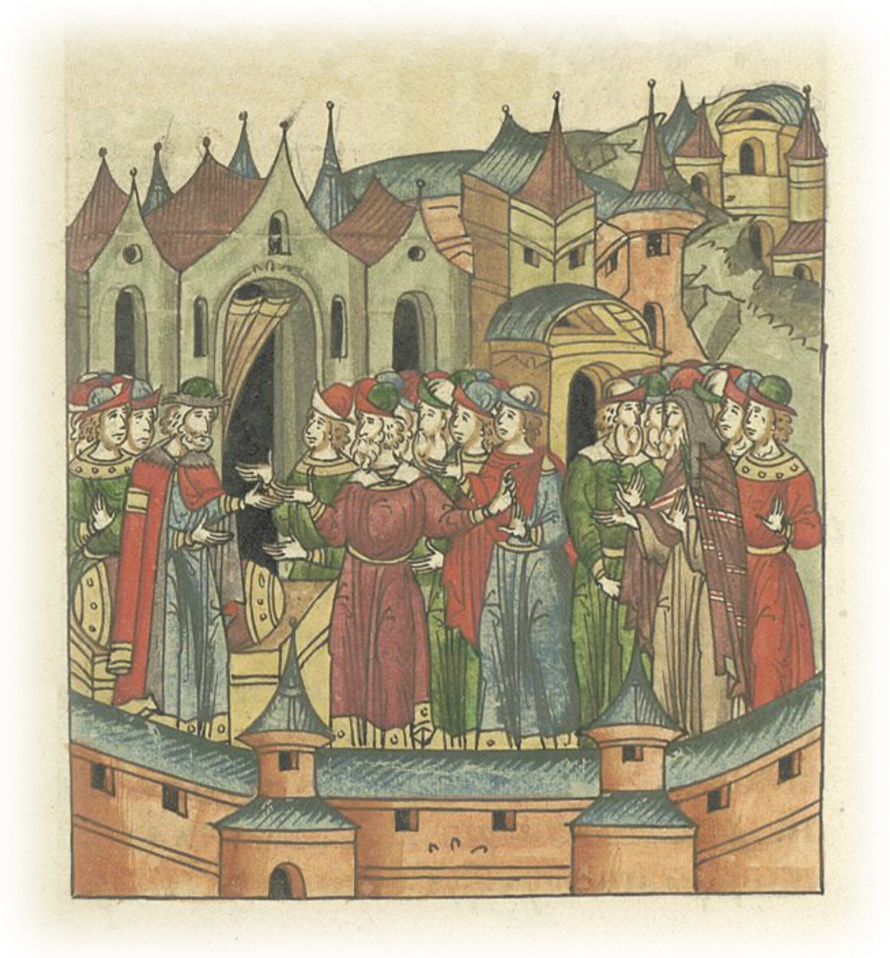 Князь Александр Михайлович Тверской решает идти в Орду к царю Азбяку, но псковичи не пускают его, говоря, что будут стоять за него и не дадут убить.
