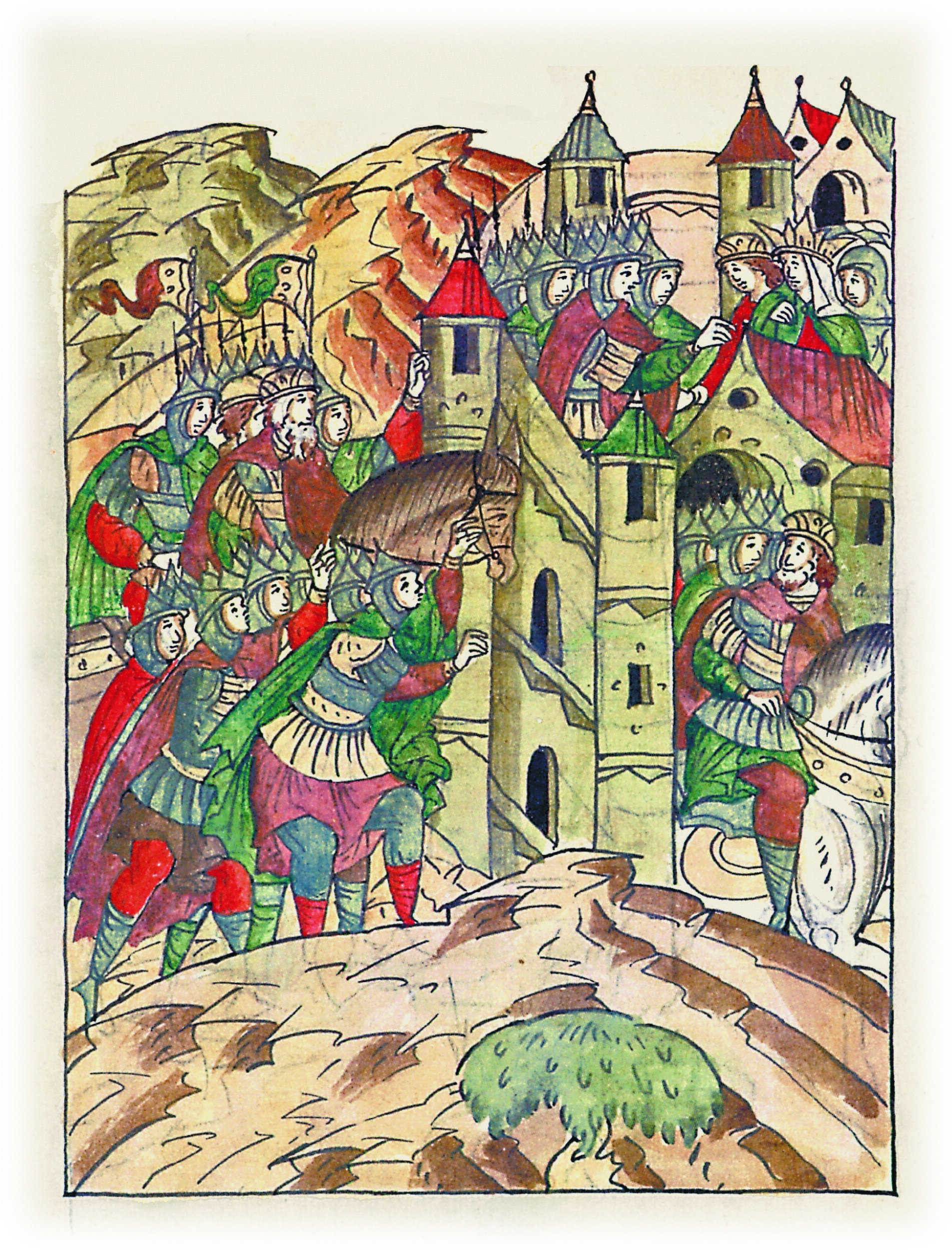 И так начали ратники от некрепких мест города отходить, и малое и худое там воинство оставили, и все устремились к крепким местам города; и так горожане на крепких местах города встали против них, некрепкие же места города все были неохраняемы.