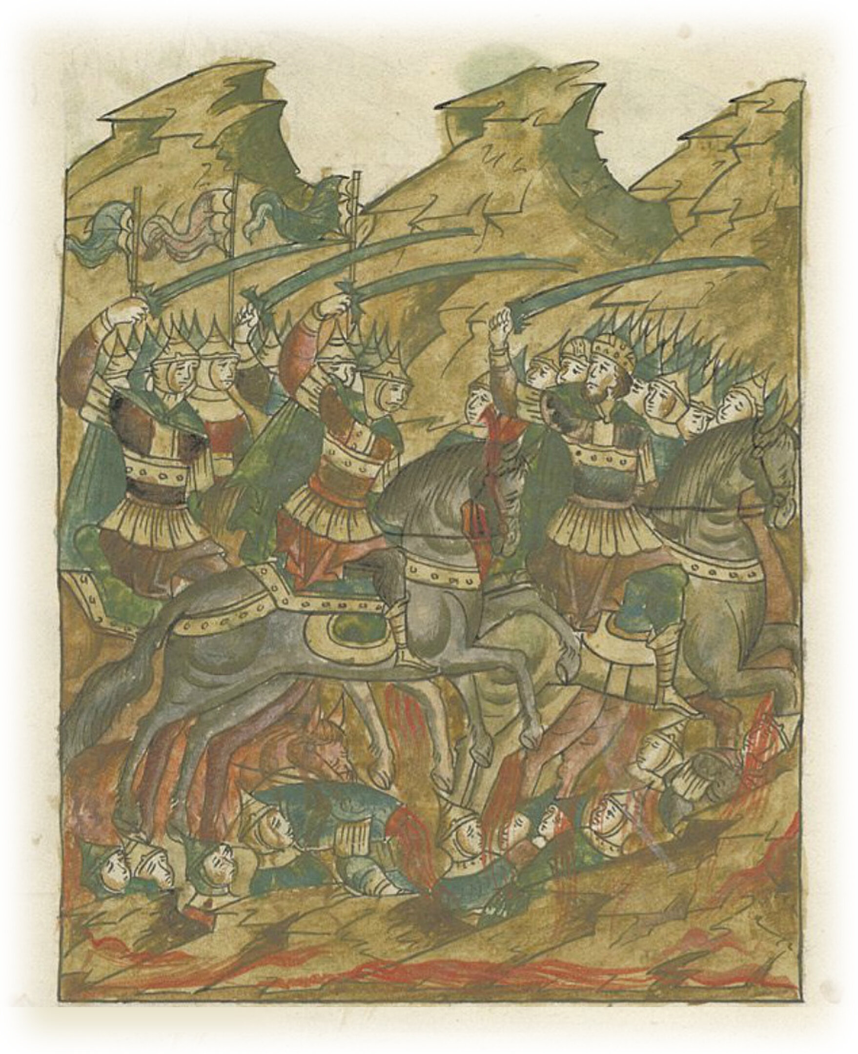 И была сеча злая из-за грехов наших, всюду мертвые лежали, и кровь как вода лилась, и была победа над князьями русскими, какой не бывало от начала Русской земли.
