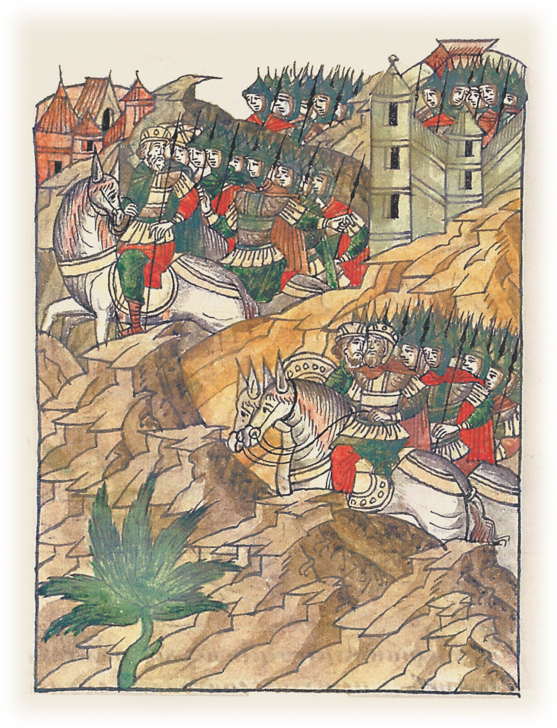 Воеводы царя Ивана Васильевича, разделившись, идут в погоню за царем Емгурчеем.