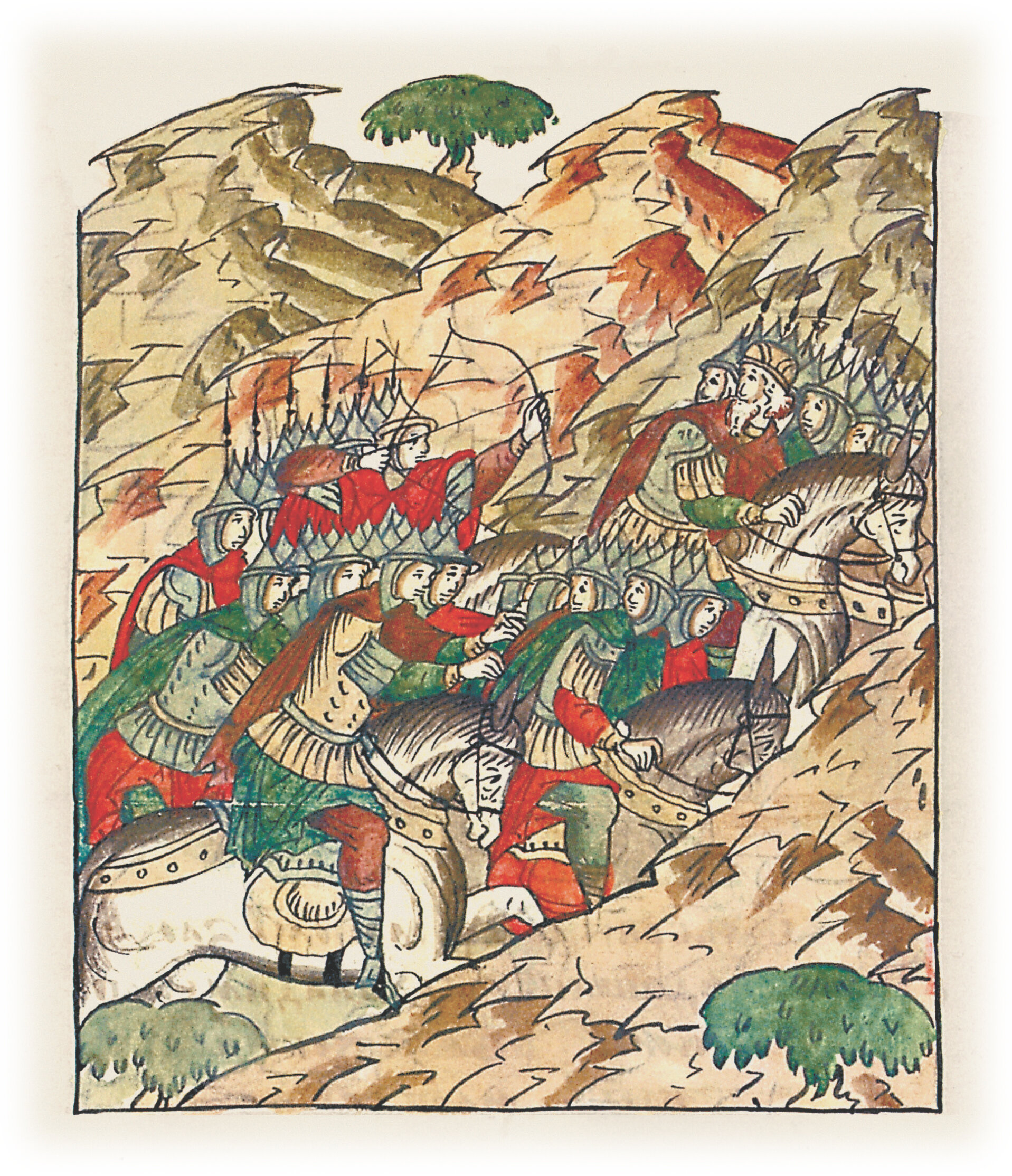 Воеводы царя Ивана Васильевича, разделившись, идут в погоню за царем Емгурчеем.
