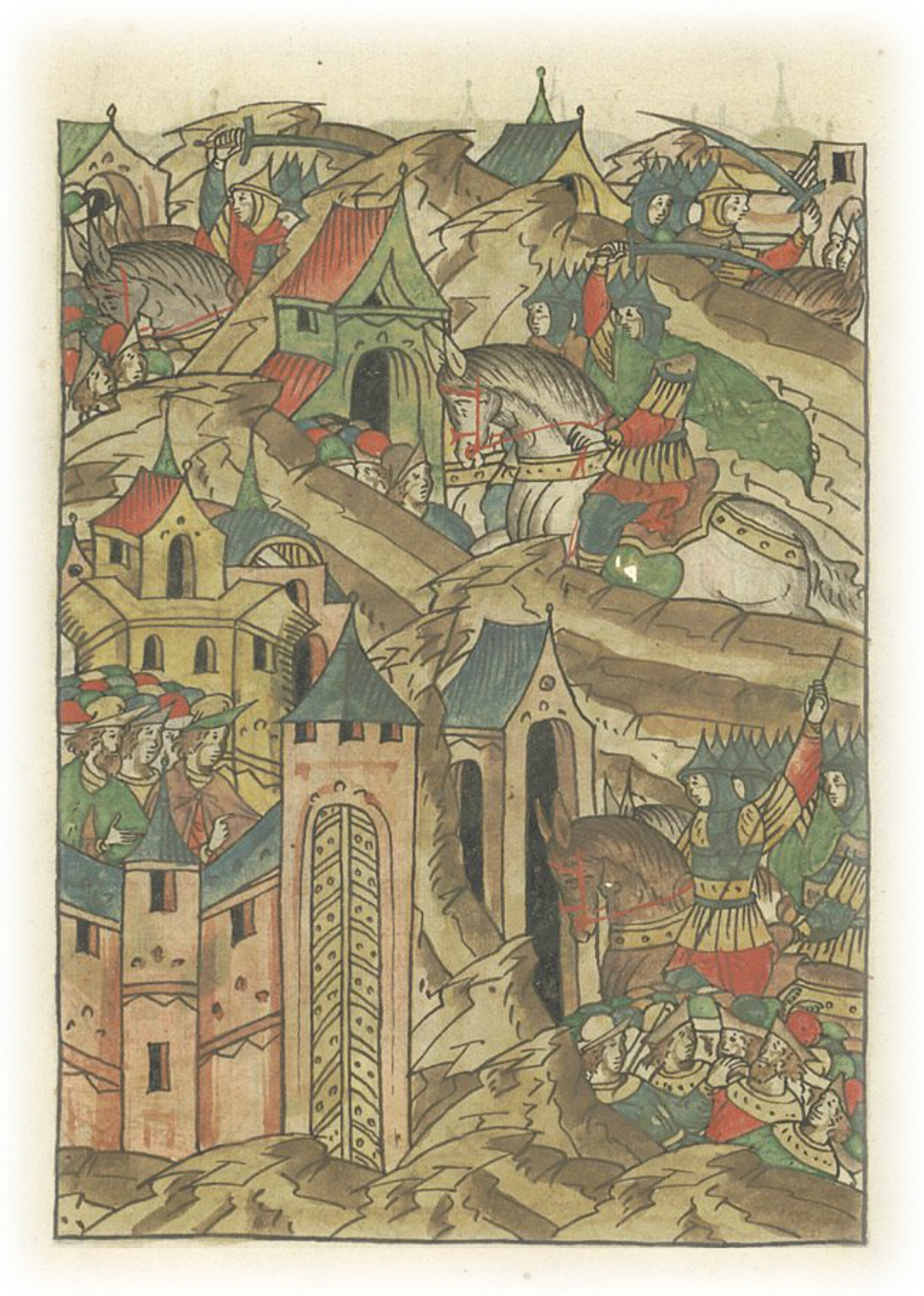 Языки говорят воеводам царя Ивана Васильевича, что магистр окопался большим рвом вокруг города Рындола, бьет из пушек и пищалей и приступает к Рындолу.