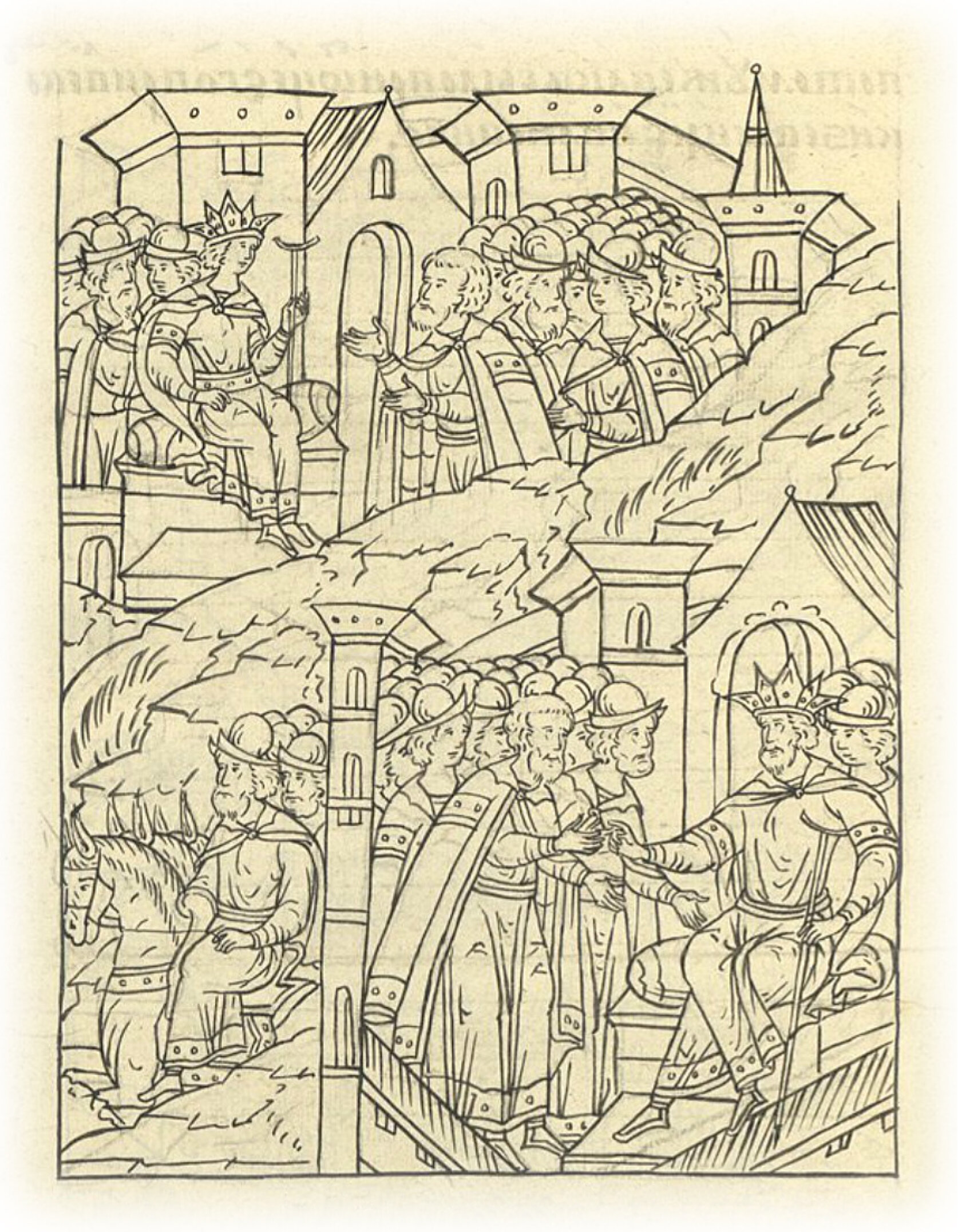 Ругодивские посадники Яким и Захар приезжают в Москву. Воеводы царя Ивана Васильевича Алексей Адашев и Иван Михайлов сообщают им, что государь пожалует их, если сдадут его воеводам помимо Ругодива Вышгород.