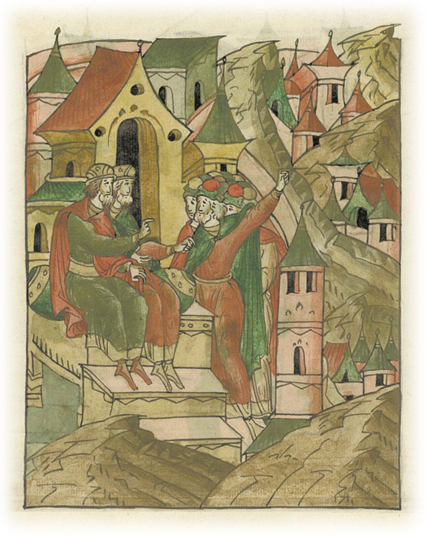 В 6684 (1176) году. Сидели князья Мстислав и брат его Ярополк Ростиславичи на княжении в земле Ростовской и Суздальской, раздали города посадникам, своим боярам и дружине своей.