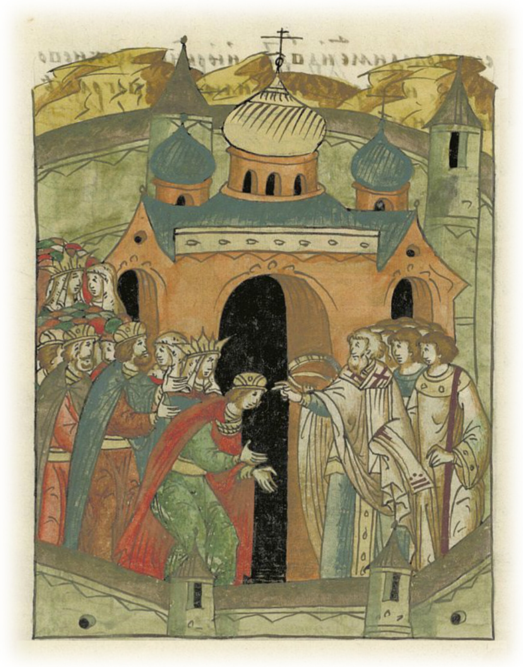 и обвенчаны были они в церкви Пречистой Богородицы во Владимире блаженным Иоанном, епископом Ростовским, Суздальским и Владимирским, присутствовал там и сам великий князь Всеволод Юрьевич с своей княгиней и детьми, и великий князь Рязанский Роман Глебович, а с ним его братья – князь Всеволод Глебович, князь Владимир Глебович со своим сыном Глебом, и князь Муромский Владимир, и Давид, и Юрий со своими воинами; и была радость и любовь в городе Владимире.