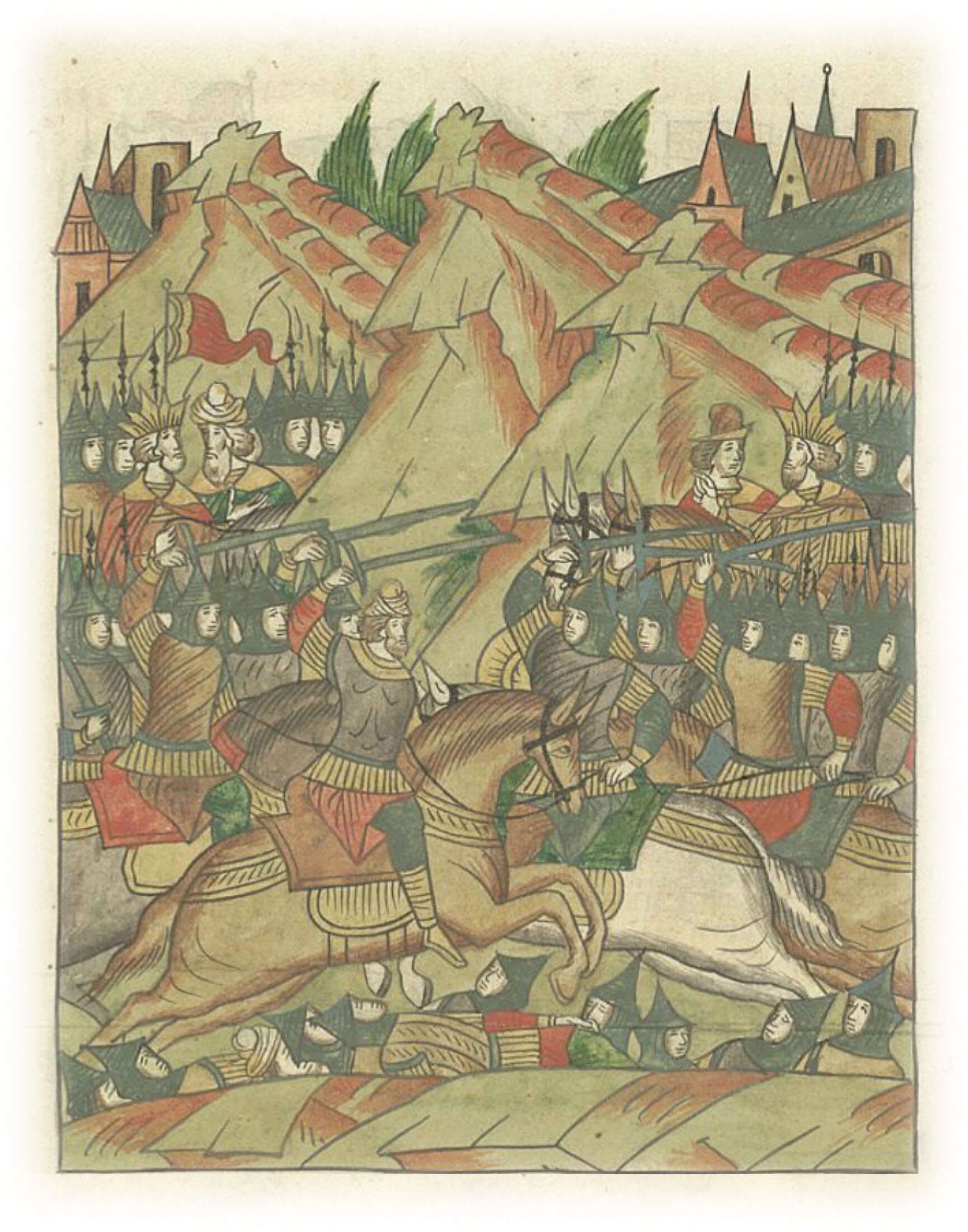 Сошлись же оба полка, и была брань великая и сеча злая.