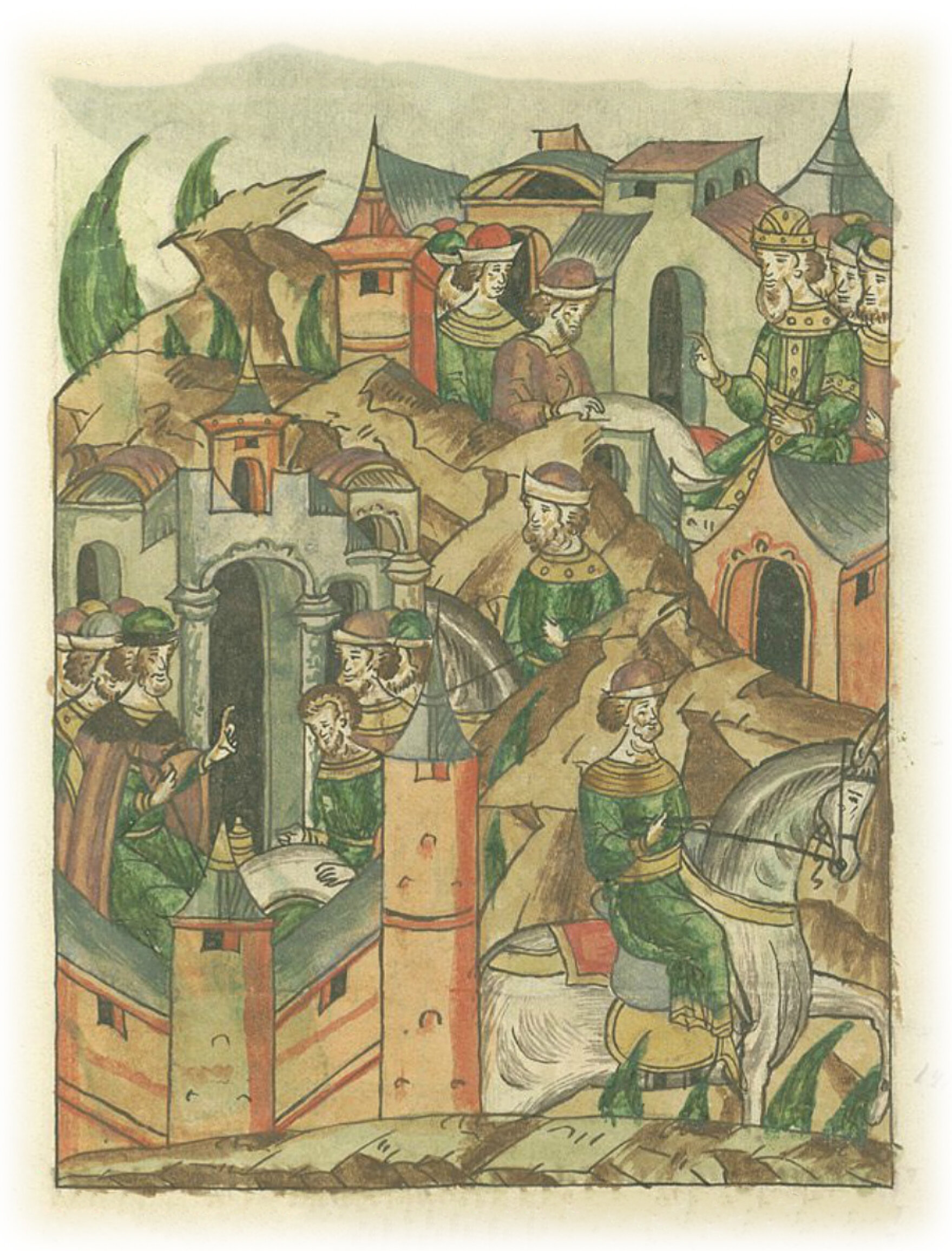 Ругодивские посадники Яким и Захар приезжают в Москву. Воеводы царя Ивана Васильевича Алексей Адашев и Иван Михайлов сообщают им, что государь пожалует их, если сдадут его воеводам помимо Ругодива Вышгород.