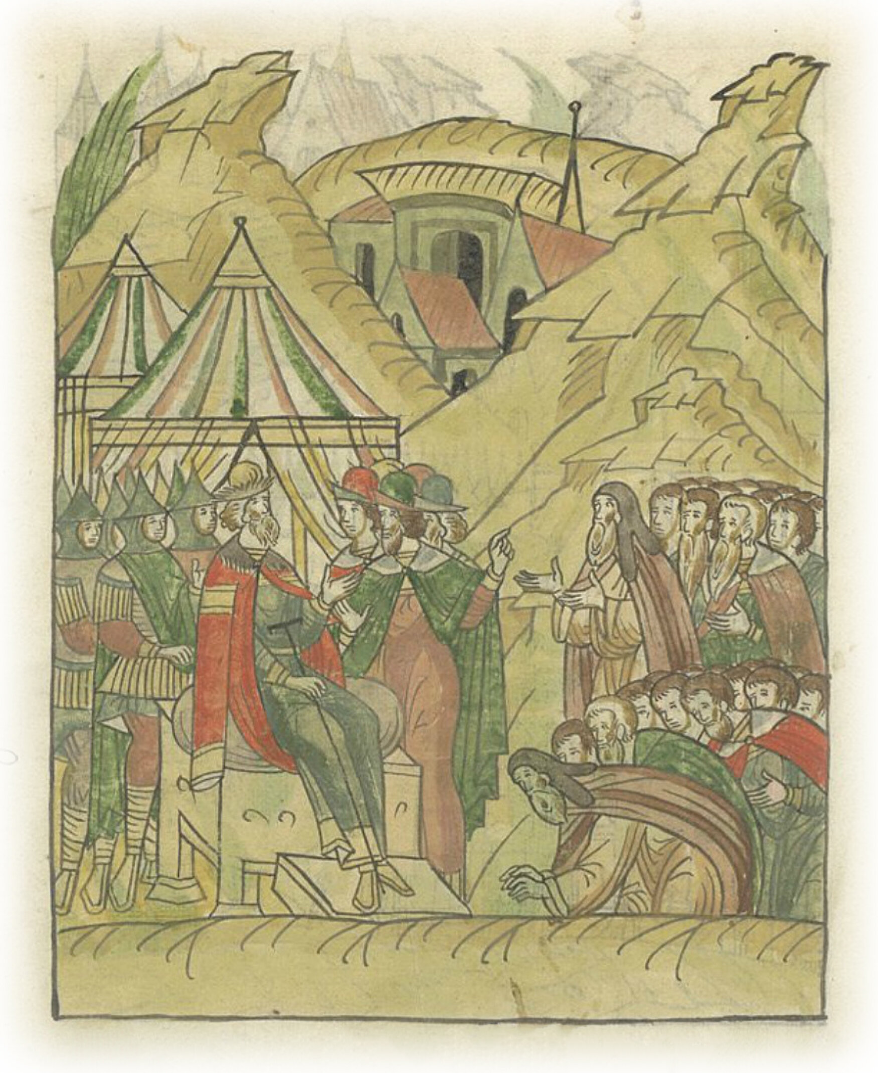 Они же пришли к нему и поклонились до земли, моля и милости прося о своем преступлении, что без ума противились ему, дабы явил им свою многую милость, перед ним согрешившим, чтобы пожаловал государь, смиловался над ними, возвратил бы гнев свой, не ради их челобитья, но свое показав благосердие к согрешившим, не велел бы больше казнить, грабить, жечь и пленить их.