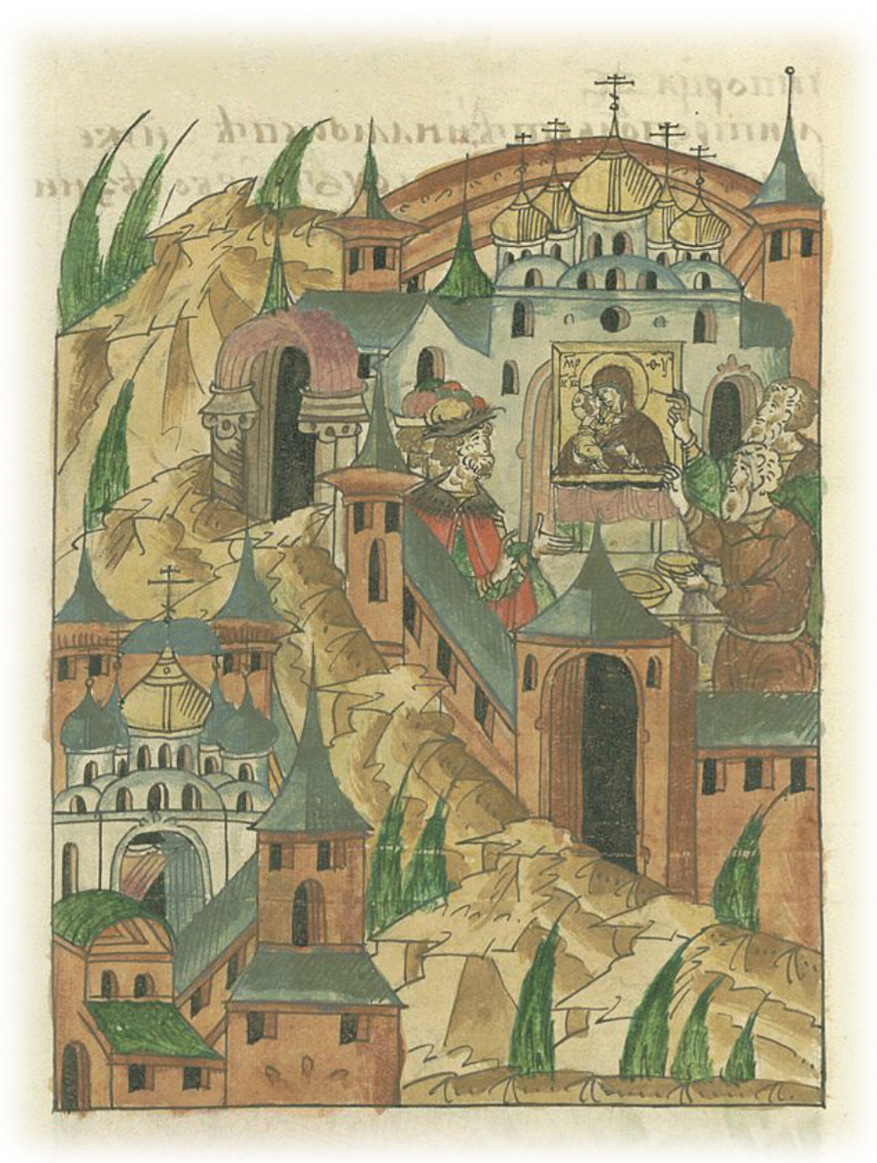Роспись великой соборной церкви Пречистой Богородицы Владимирской по повелению великого князя Василия Дмитриевича, мастерами Даниилом Иконником и Андреем Рублевым.