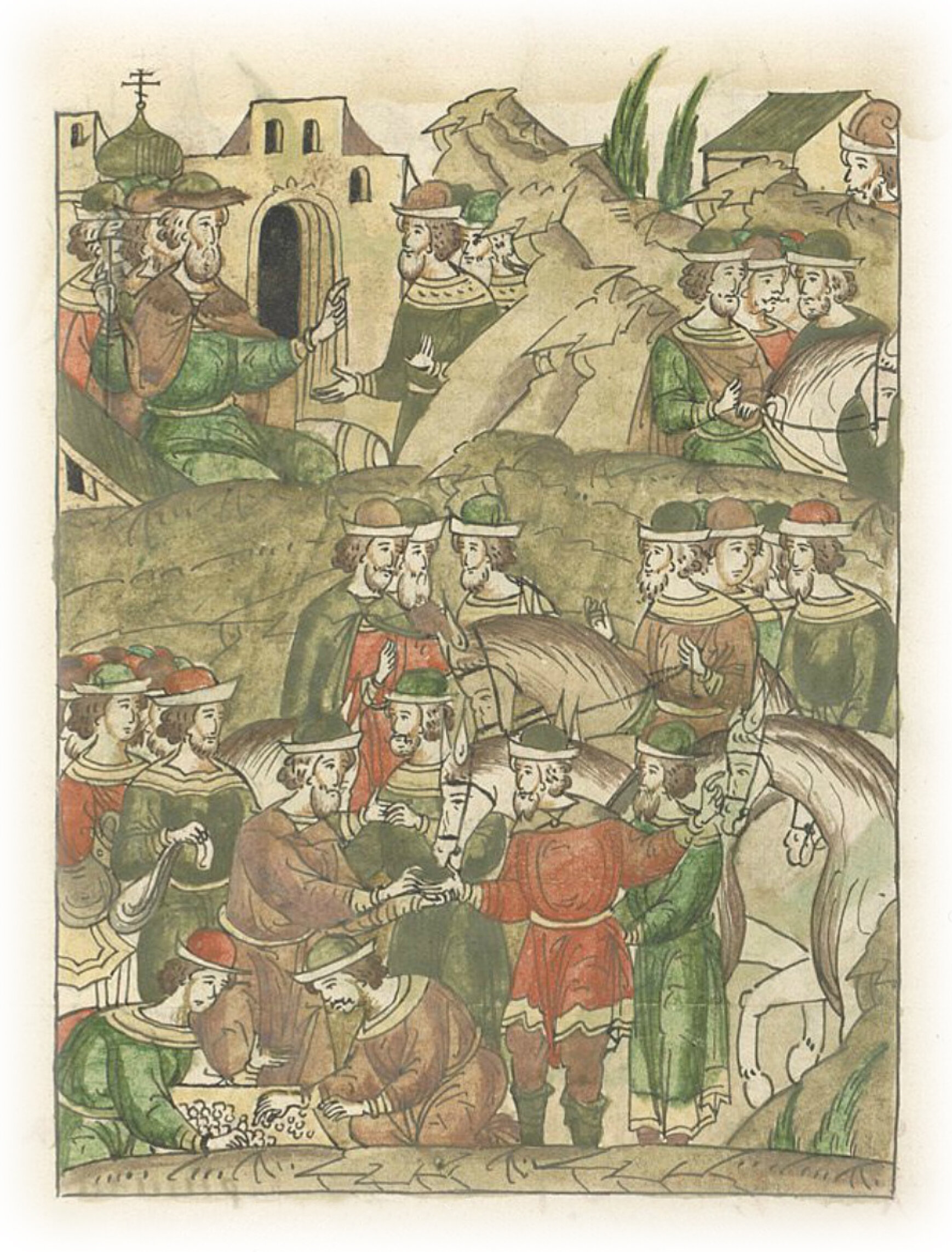 И великий князь их пожаловал, позволил им торговать, и когда купцы завершили торг, великий князь послов ногайских и купцов отпустил к их государю.