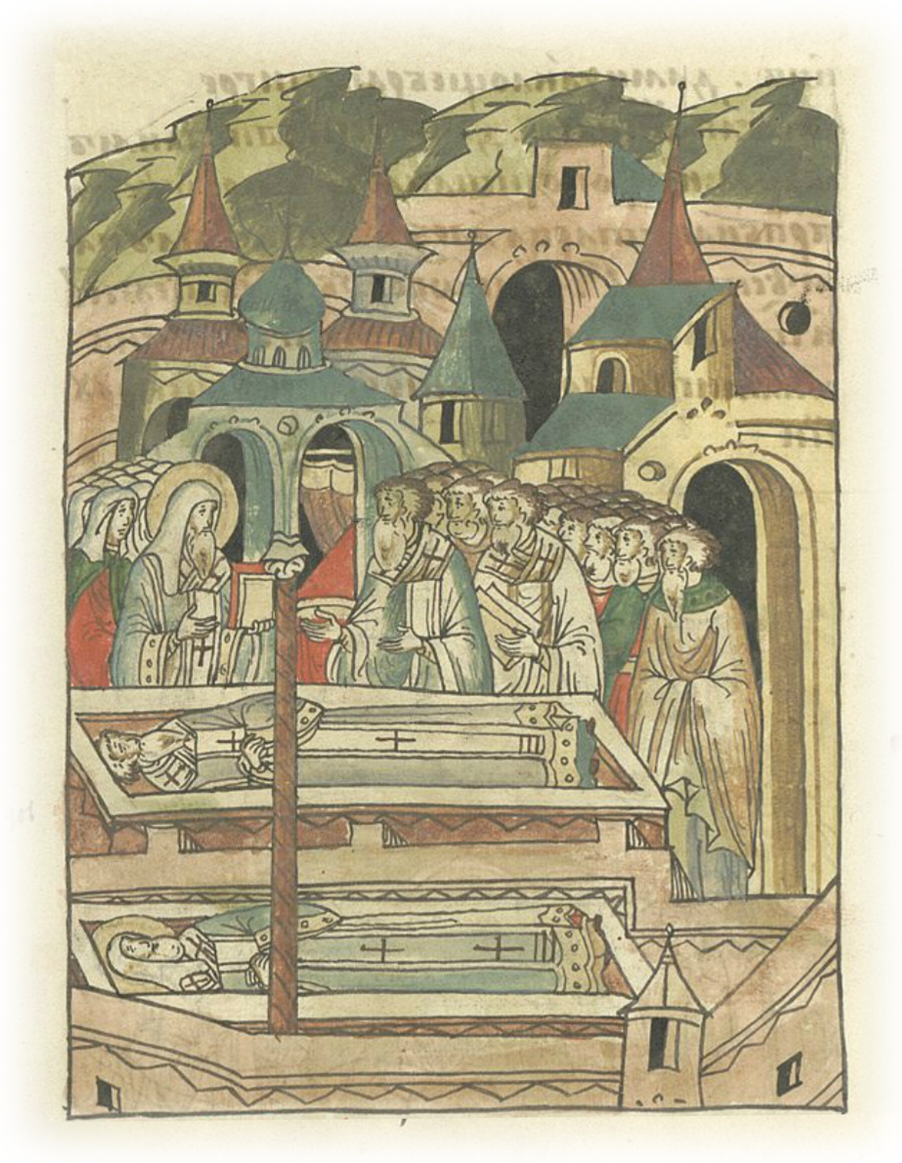 Кончина митрополита Киевского и всея Руси Феогноста и его похороны в Москве в церкви пречистой Богородицы.