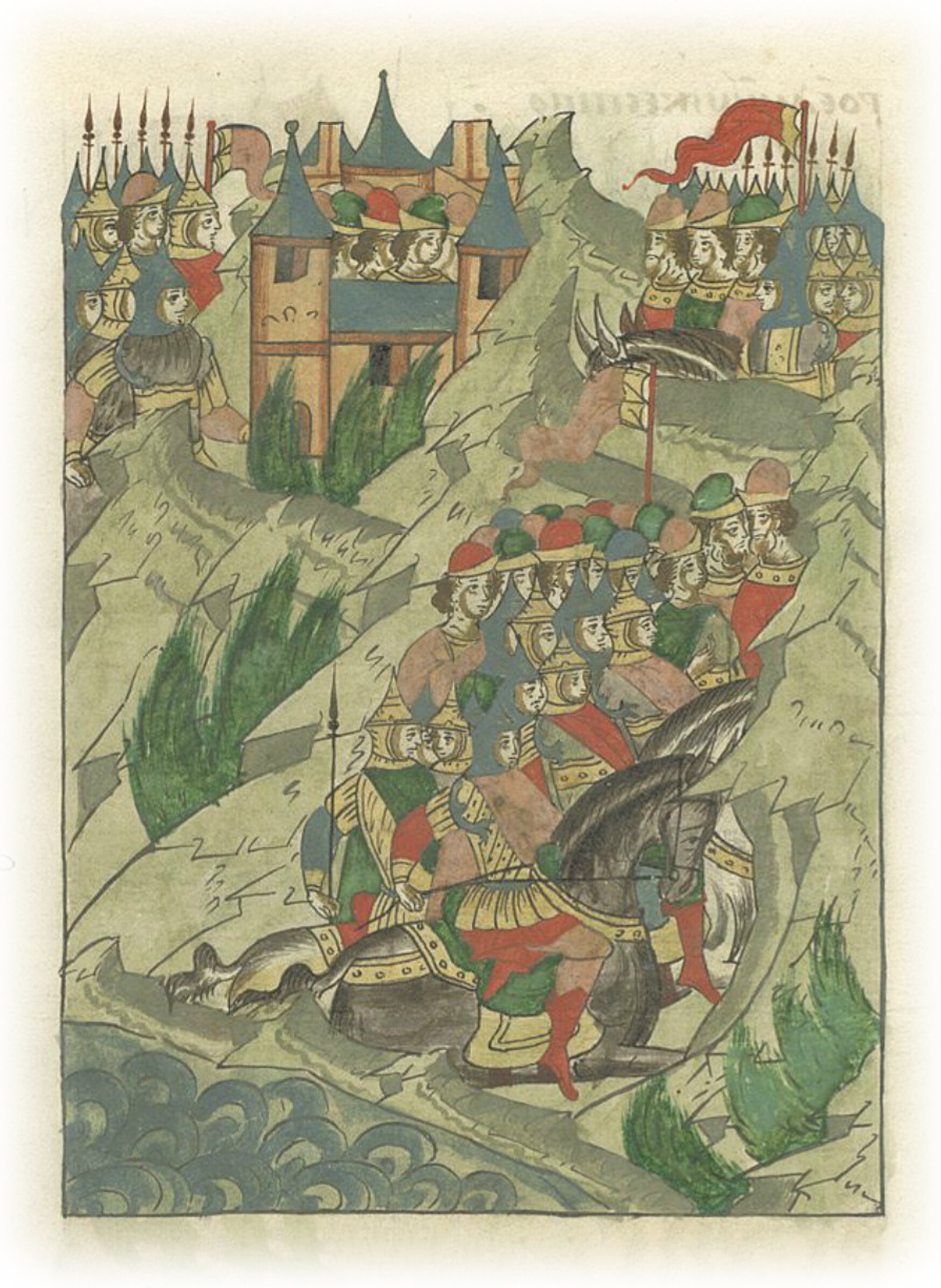 Воеводы же великого князя пошли с озера к горе, опасаясь, поскольку гора крута; и выйдя из оврагов, поднялись на гору,