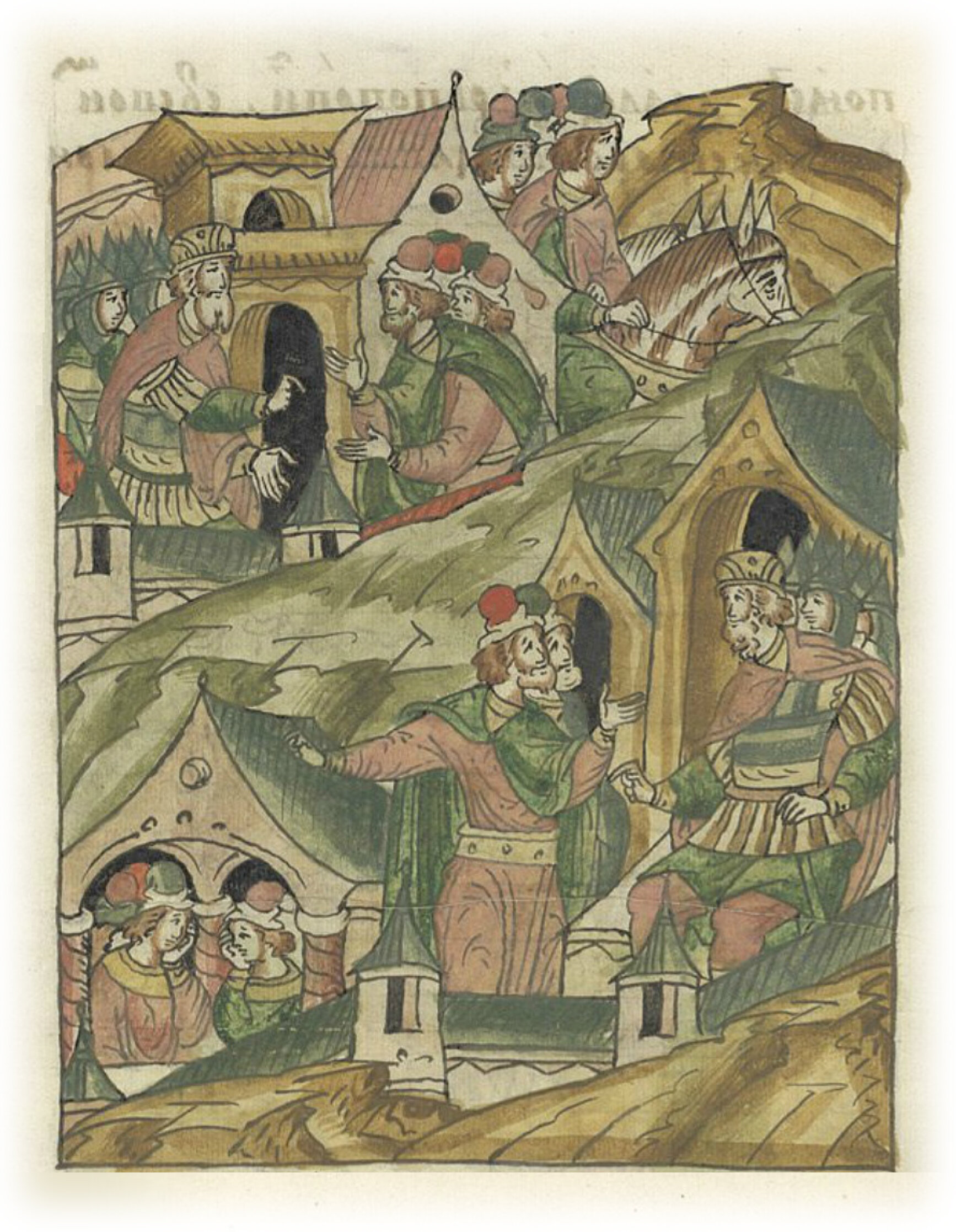 И еще послал князь Мстислав Мстиславич к зятю своему, к князю Ярославу, говоря так: «Новгород – мой, и новгородцы – мои, а я – их; и новгородцы и новоторжцы, плача, вопиют на тебя к Господу Богу и к пречистой его матери Богородице, и к моей худости, что обидел ты их. Отпусти новгородских купцов и людей, и новоторжцев, и Волок возврати, и от других волостей новгородских отступись. И мирно с новгородцами крестным целованием договоримся, что больше ничего худого не творить, крови христианской не проливать, и чужого не захватывать, и не в свои пределы не вступаться, а до великого князя Юрия Всеволодовича нет нам дела, (забудем) об обидах и насилии».