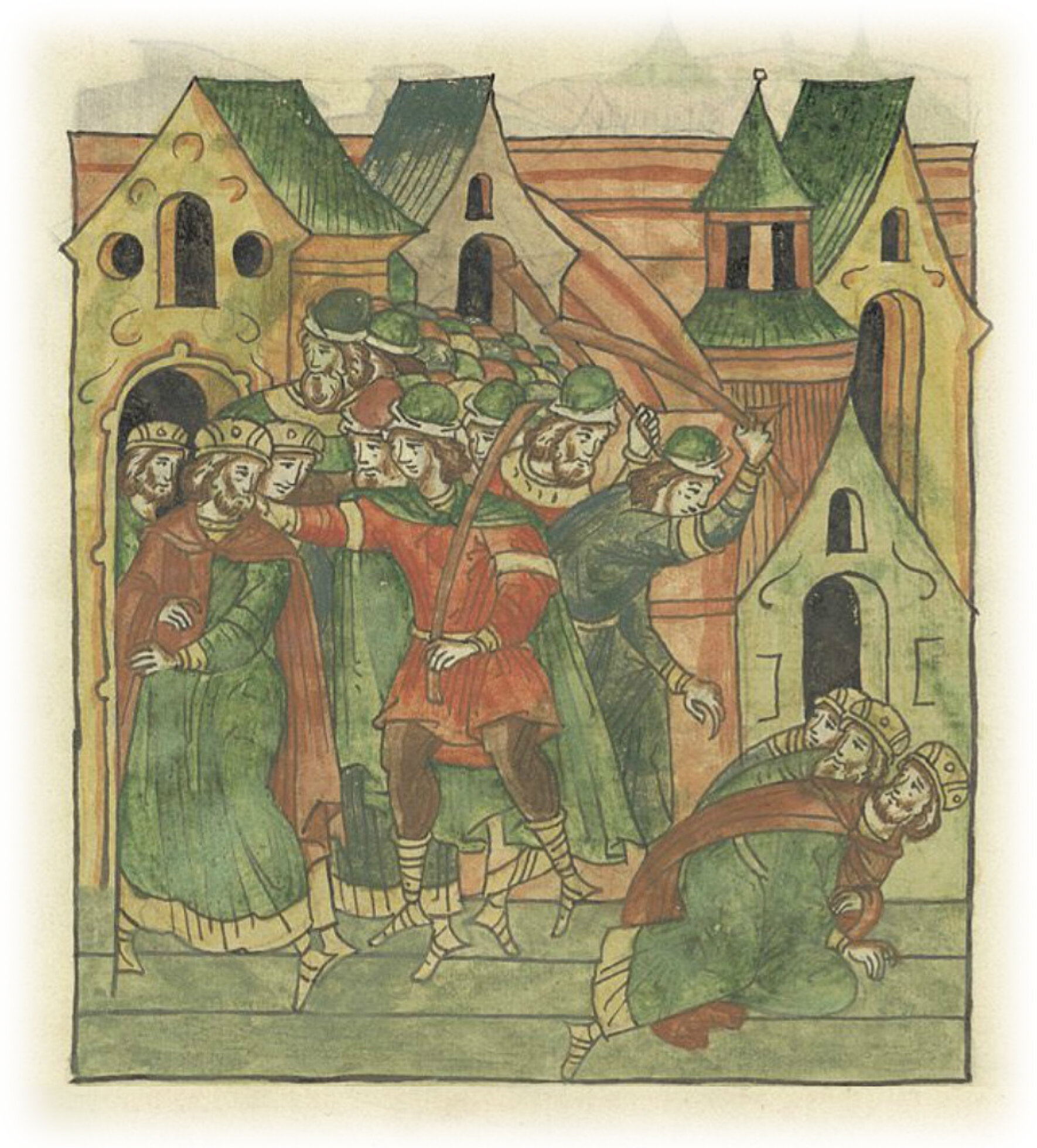 И схватили князей своих трех Игоревичей, князя Романа Игоревича и братьев его, и много били их,