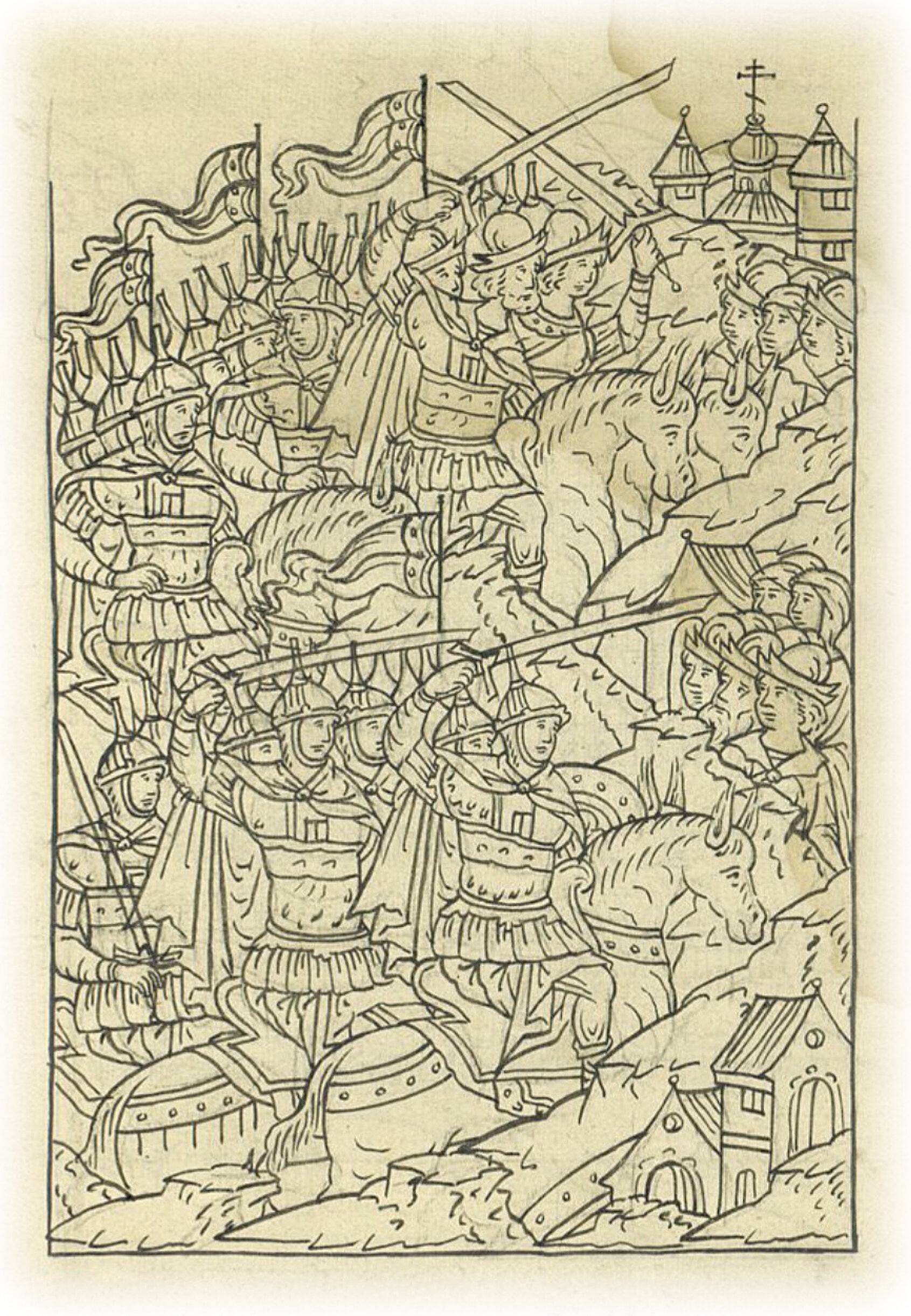 Языки говорят воеводам царя Ивана Васильевича, что магистр окопался большим рвом вокруг города Рындола, бьет из пушек и пищалей и приступает к Рындолу.