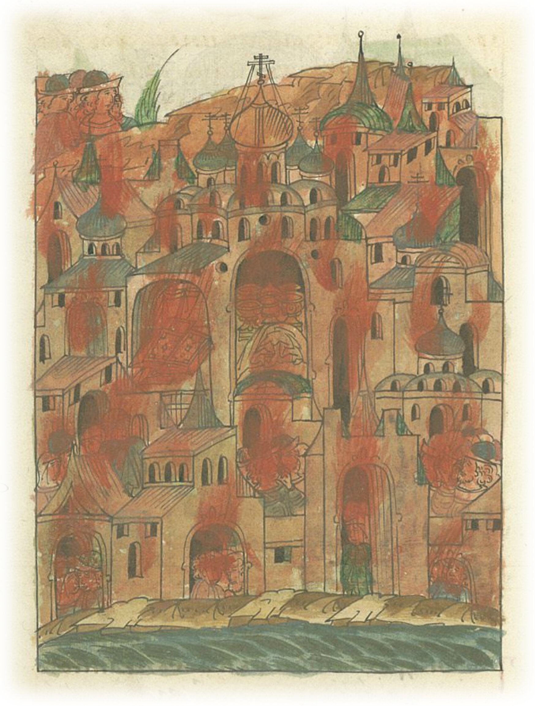 В том же году месяца июня был сильный пожар в Ростове, сгорело много церквей, соборная церковь Пречистой Богородицы так выгорела, что камни рассыпались, в церкви были красивые святые иконы, много старинных книг, золотые и серебряные сосуды, украшенные жемчугом и камнями драгоценными, ризы, драгоценные и ценные вещи, все это сгорело в огне. И княжеские, боярские дворы и дворы простых людей с имуществом сгорели, тогда была сильная засуха, к тому еще были буря и сильный ветер: сгорело и много людей, более тысячи человек. Такого сильного пожара не было в Ростове двести лет.