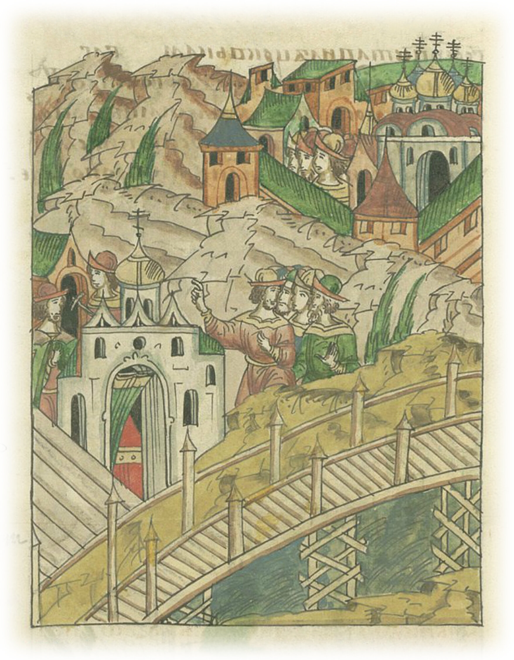 Ругодивские посадники Яким и Захар приезжают в Москву. Воеводы царя Ивана Васильевича Алексей Адашев и Иван Михайлов сообщают им, что государь пожалует их, если сдадут его воеводам помимо Ругодива Вышгород.