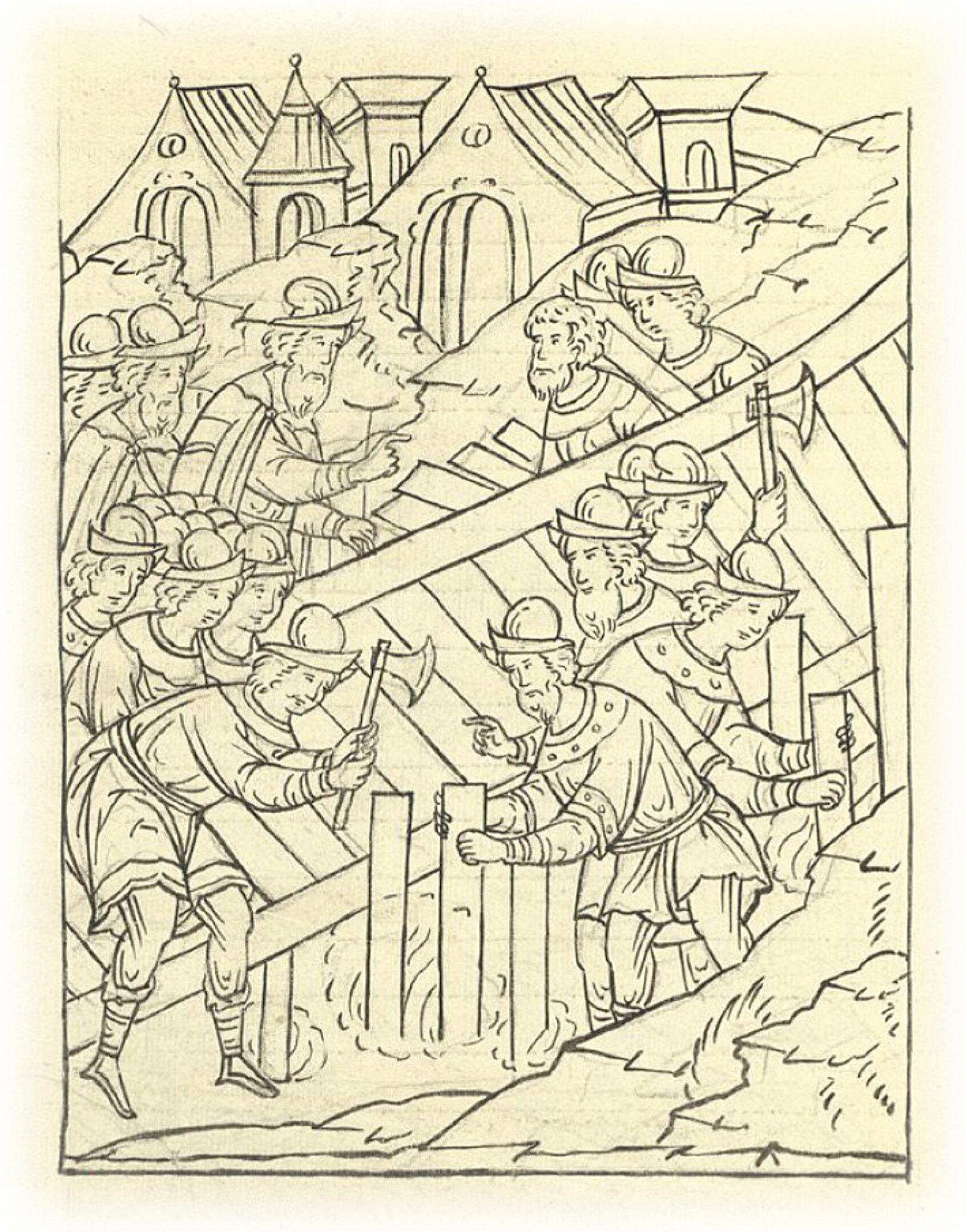 И просекали лед, и столбы ставили, и мост намостили; а тогда были городовые приказчики Дмитрий Волынский да Алексей Хозников, и иные.