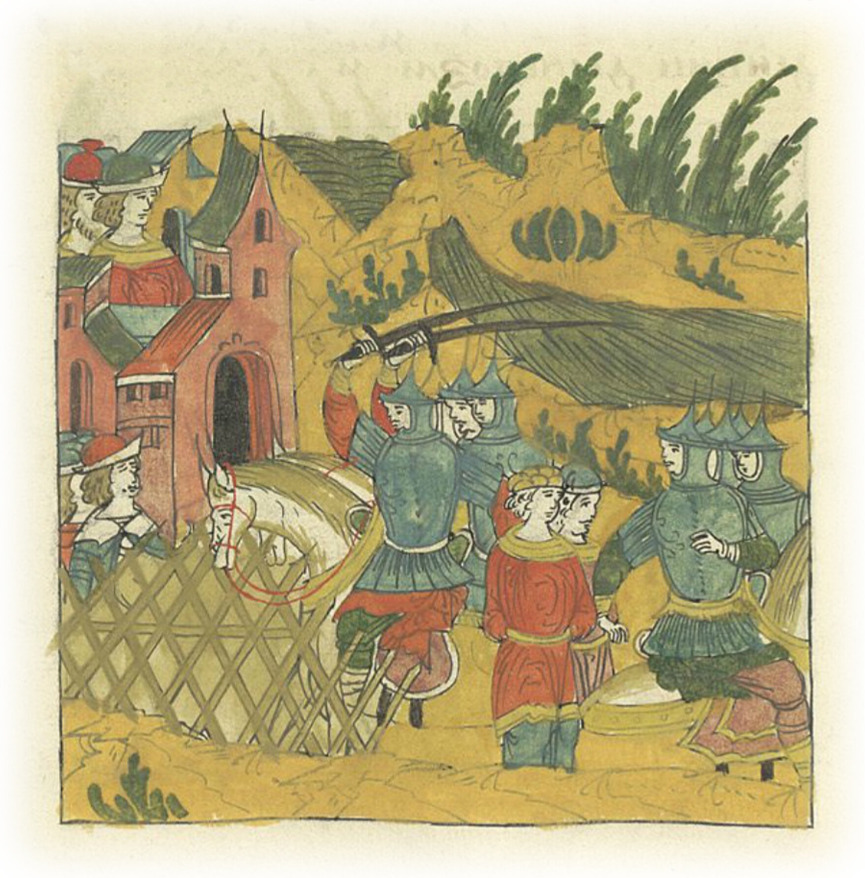 Языки говорят воеводам царя Ивана Васильевича, что магистр окопался большим рвом вокруг города Рындола, бьет из пушек и пищалей и приступает к Рындолу.