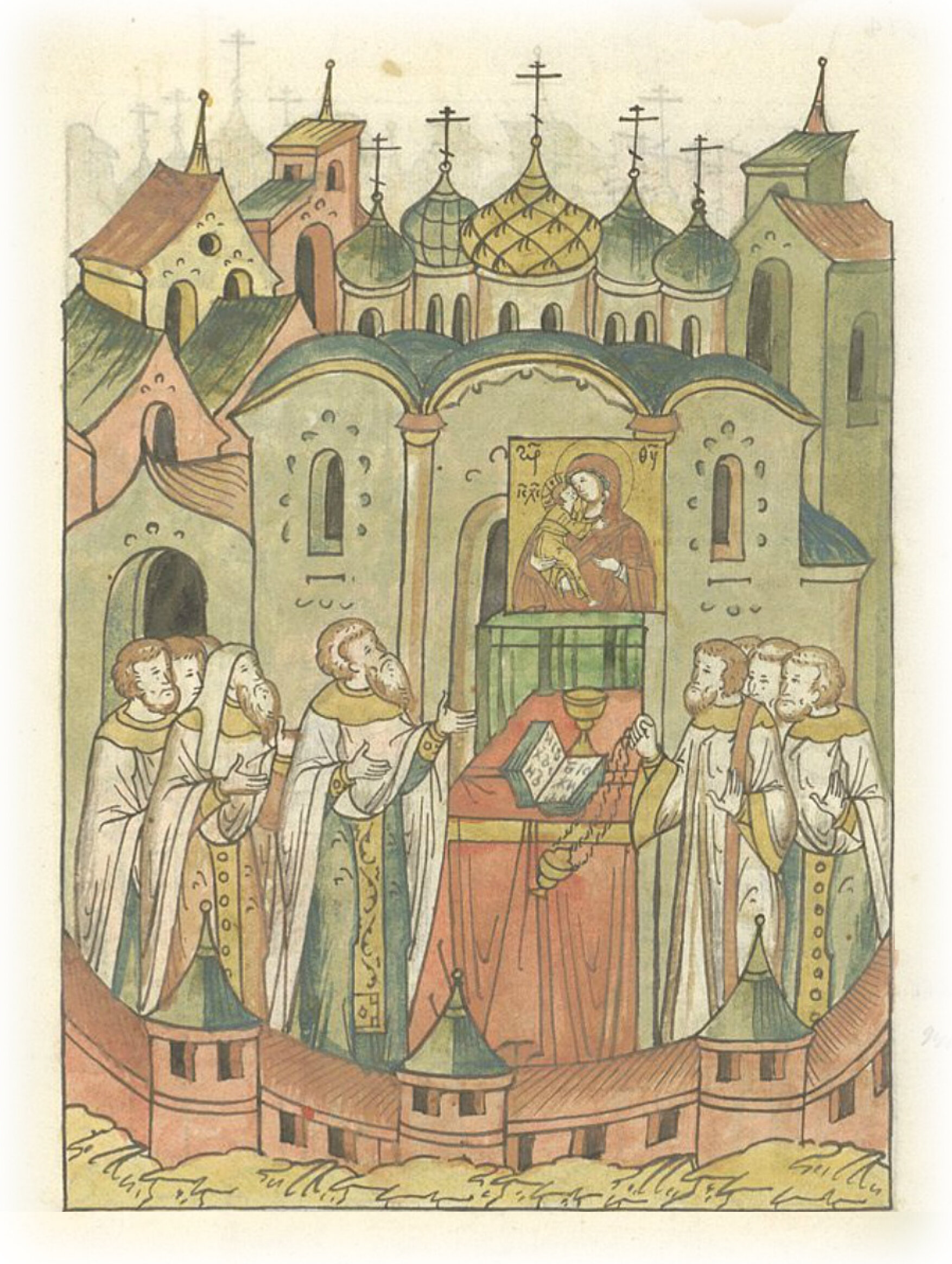 Послы митрополита всея Руси Киприана приезжают во Владимир за чудотворной иконой Богоматери и совершают божественную литургию в соборной церкви Успения пресвятой Богородицы.