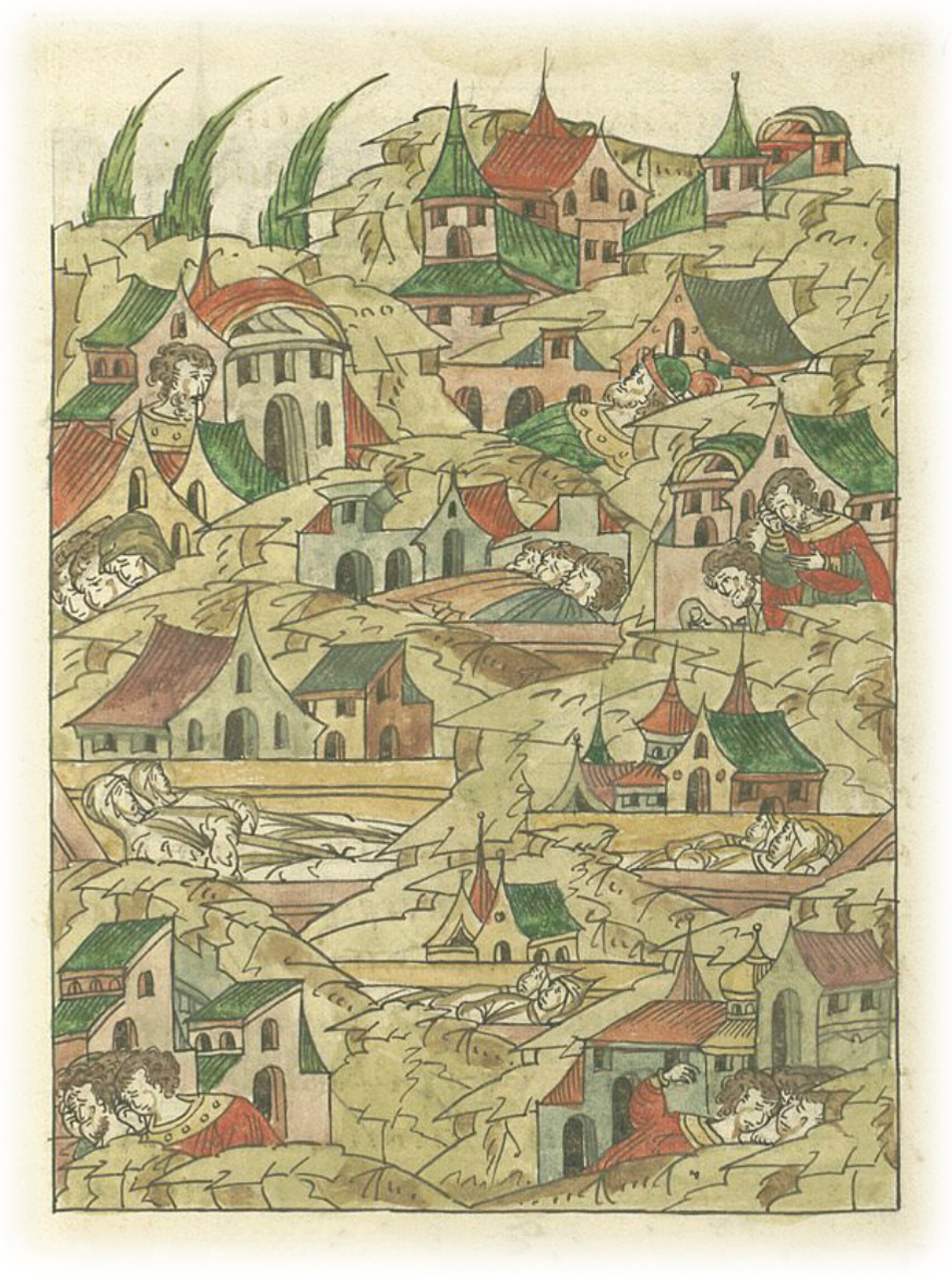 В том же году был мор среди людей во многих землях: ржевских, можайских, дмитровских, звенигородских, переяславских, владимирских, юрьевских, рязанских, тарусских, распространился мор и в некоторых московских волостях.