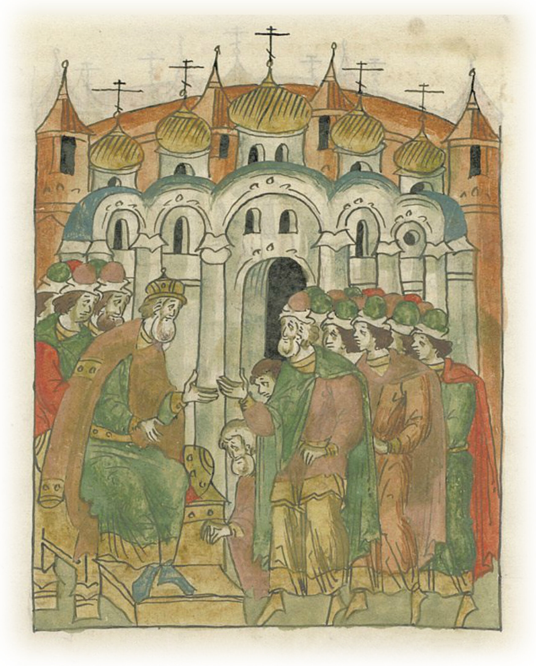 Смоленские князья, бояре, мещане и горожане произносят здравницу великому князю Василию Ивановичу.
