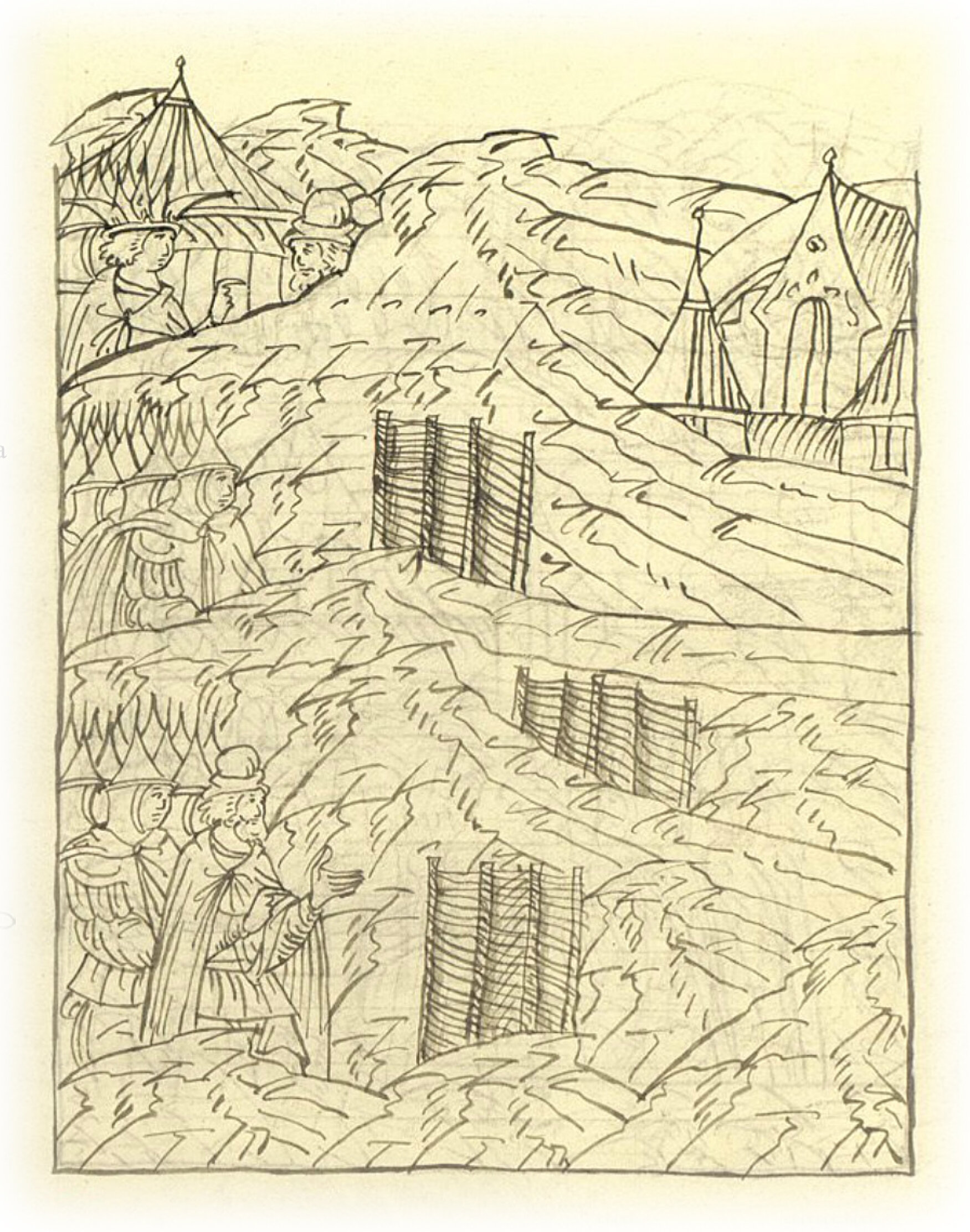 Языки говорят воеводам царя Ивана Васильевича, что магистр окопался большим рвом вокруг города Рындола, бьет из пушек и пищалей и приступает к Рындолу.